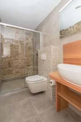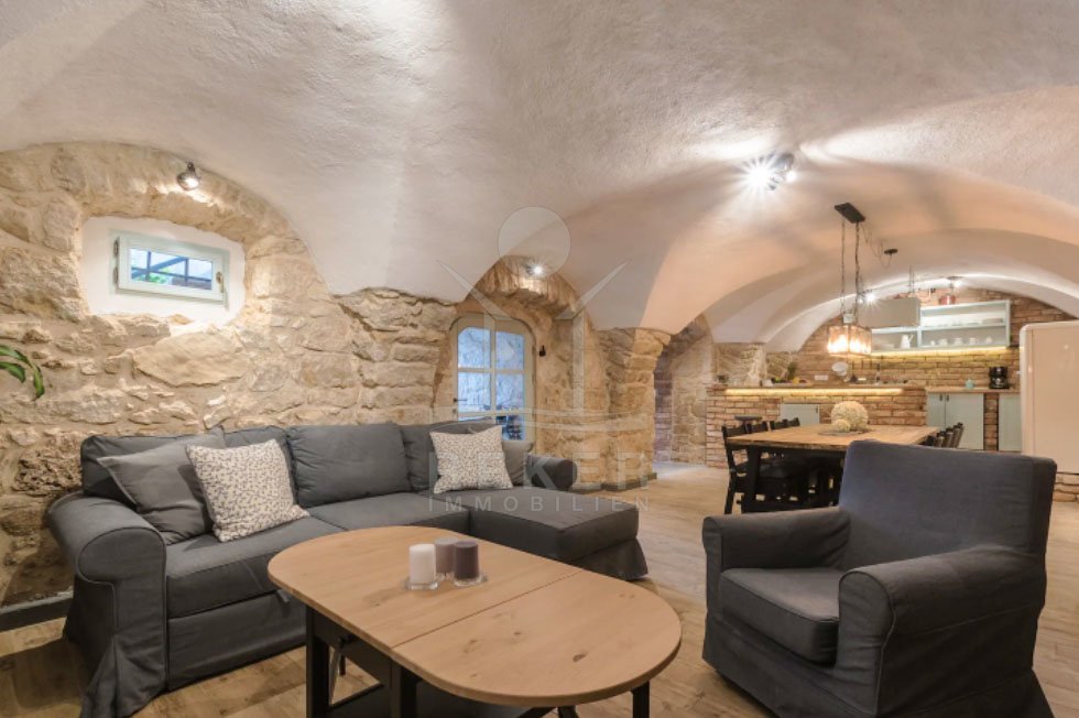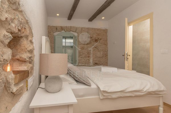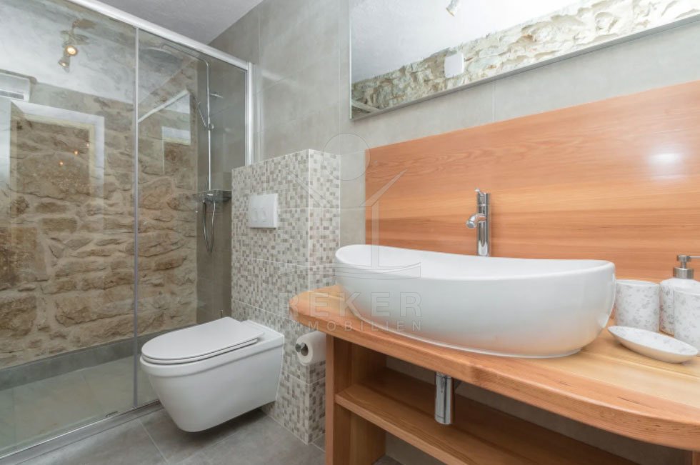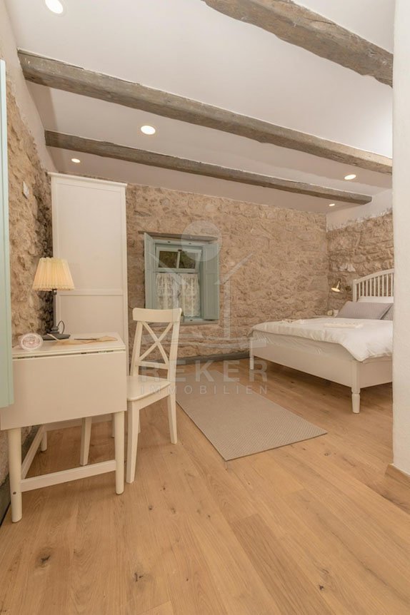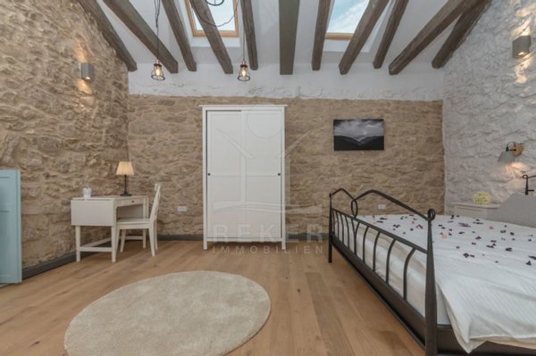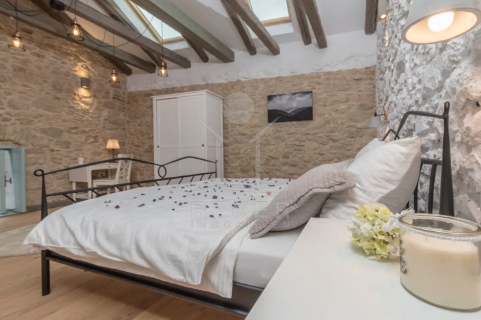 Freuen Sie sich auf eine Kombination aus kroatischer Tradition und modernem Luxus, während Sie das geräumige und stilvoll möblierte Interieur bewundern.