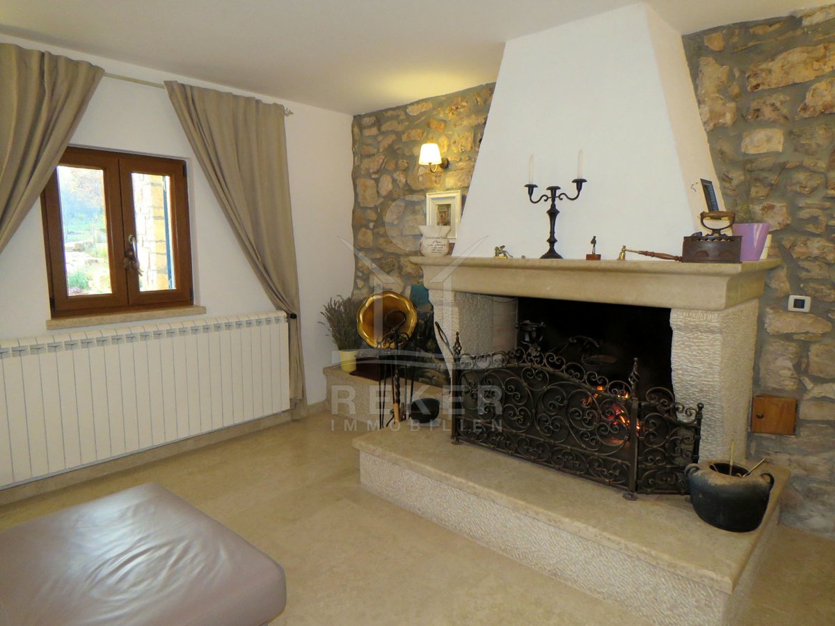 Dieses renovierte Steinhaus liegt ruhig und idyllisch in der Nähe von Labin, nur wenige Kilometer vom Zentrum entfernt. Die Umgebung ist grün, ländlich und angenehm abgeschieden – perfekt, wenn Sie Ruhe suchen. Das Grundstück umfasst beeindruckende
