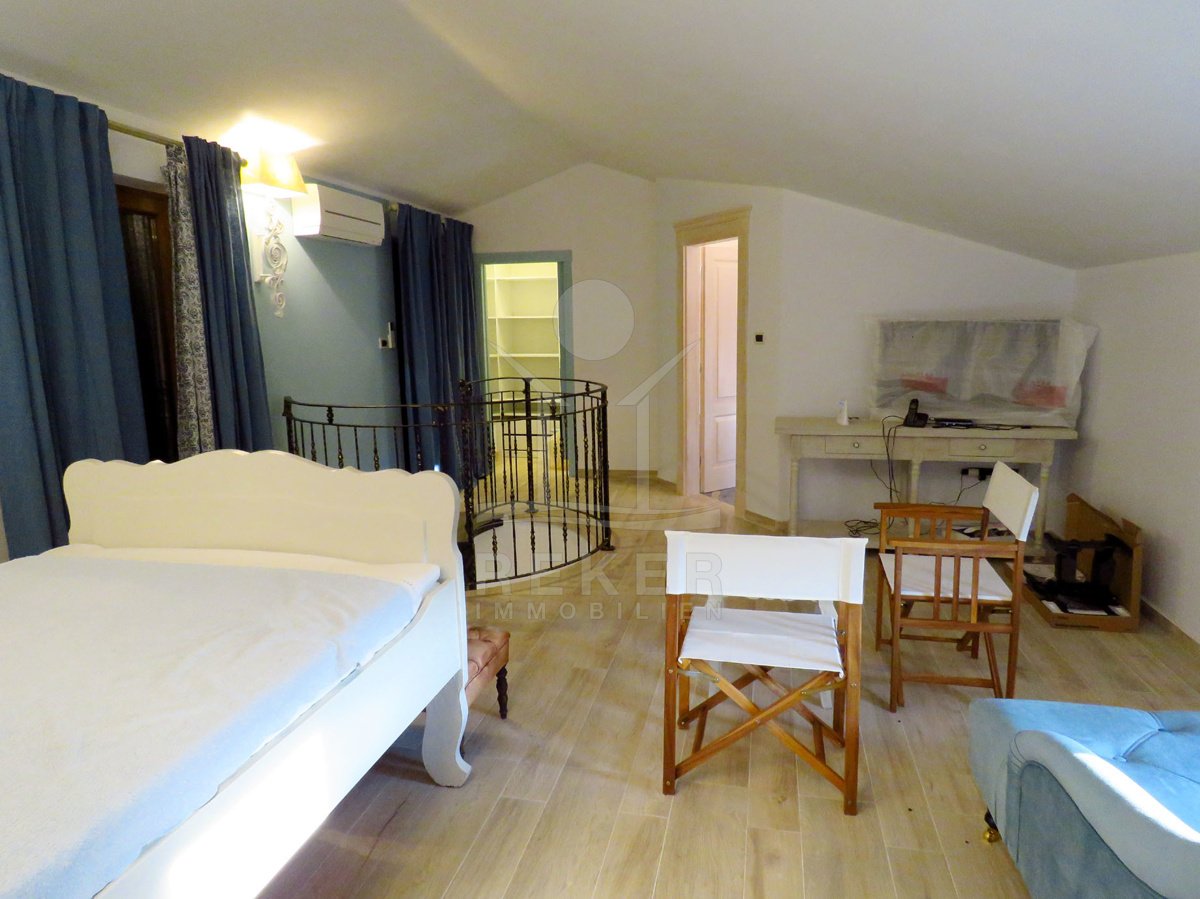 Dieses renovierte Steinhaus liegt ruhig und idyllisch in der Nähe von Labin, nur wenige Kilometer vom Zentrum entfernt. Die Umgebung ist grün, ländlich und angenehm abgeschieden – perfekt, wenn Sie Ruhe suchen. Das Grundstück umfasst beeindruckende 4.690 m². Genug Raum für Gartenträume, kleine Tiere oder einfach nur viel Privatsphäre. Gleichzeitig erreichen Sie das Meer in gut 15 Minuten mit dem Auto.