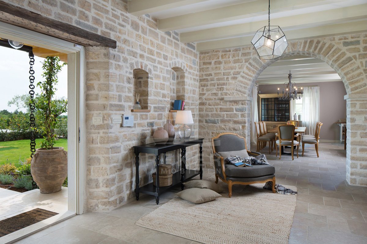 Inmitten der charmanten Landschaft von Kanfanar in der Nähe von Rovinj erwartet Sie eine Steinhausvilla, die Sie begeistern wird. Dieses Luxussteinhaus ist nicht nur ein Zuhause, sondern ein Lebensstil. Die vollständig eingerichtete Villa strahlt