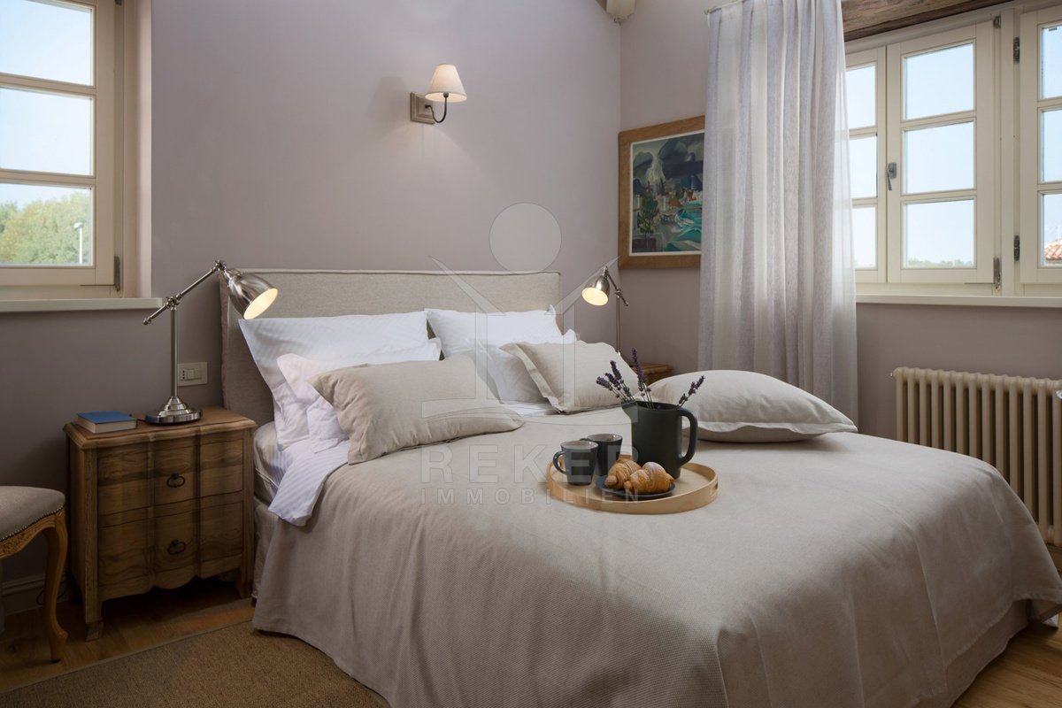 Inmitten der charmanten Landschaft von Kanfanar in der Nähe von Rovinj erwartet Sie eine Steinhausvilla, die Sie begeistern wird. Dieses Luxussteinhaus ist nicht nur ein Zuhause, sondern ein Lebensstil. Die vollständig eingerichtete Villa strahlt mediterranen Flair aus und bietet Ihnen alle Annehmlichkeiten, die Sie sich wünschen können. Der großzügige Pool mit Hydromassagen lädt zum Entspannen ein und verwöhnt Sie mit purem Luxus. Diese Villa ist Teil eines exklusiven Resorts und bietet elegante Unterhaltungsmöglichkeiten. Ob als persönlicher Rückzugsort am Meer oder als profitables Tourismusobjekt, die Möglichkeiten sind grenzenlos. Erfüllen Sie sich Ihre Träume von Lebensqualität und Luxus in dieser beeindruckenden Steinhausvilla in Istrien.