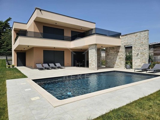 Genießen Sie Entspannung pur in dieser luxuriösen Villa in der Nähe von Porec! Mit einem beheizten Pool und einem Jacuzzi bietet diese Immobilie alles, um Ihre eigenen vier Wände in ein privates Wellness-Paradies zu verwandeln. Tauchen Sie ein in den erfrischenden Pool oder entspannen Sie im wohltuenden Jacuzzi und lassen Sie den Alltagsstress hinter sich. Ob im ersten Stockwerk mit einem spektakulären Blick oder im modernen Design, diese Villa weiß zu überzeugen. Freuen Sie sich auf ein wahrhaftig schönes Leben in einer der schönsten Regionen Kroatiens.