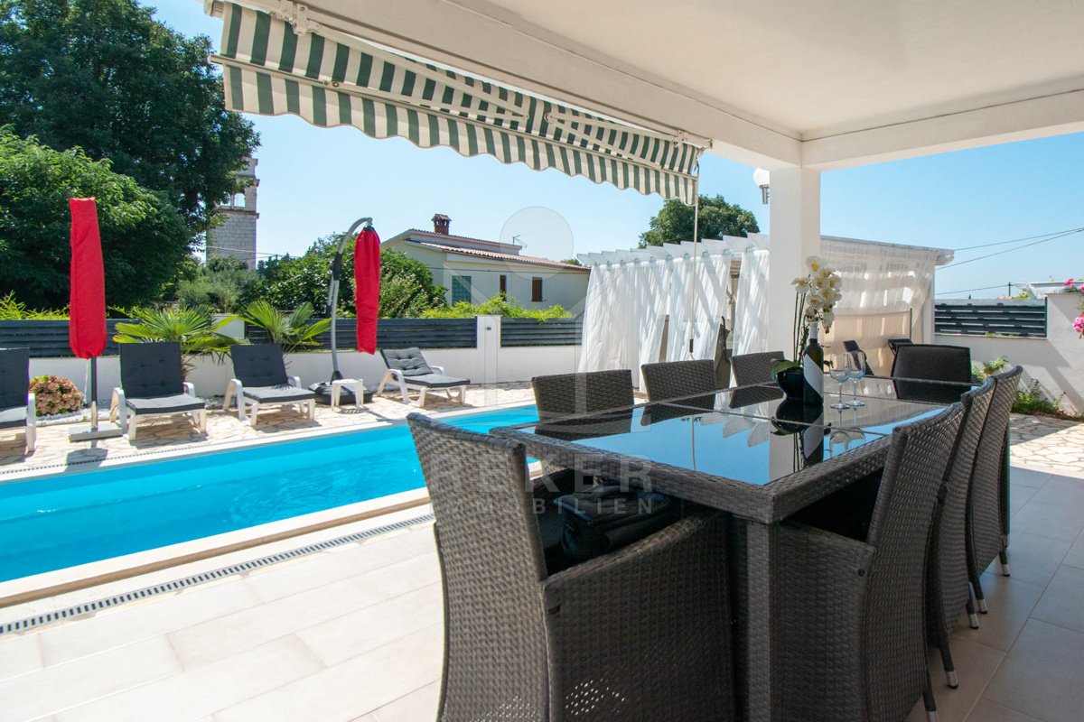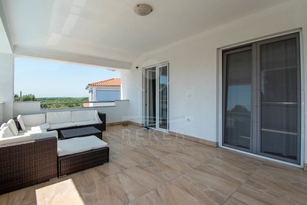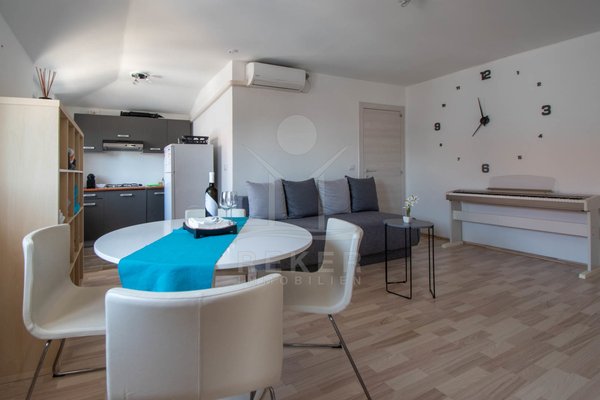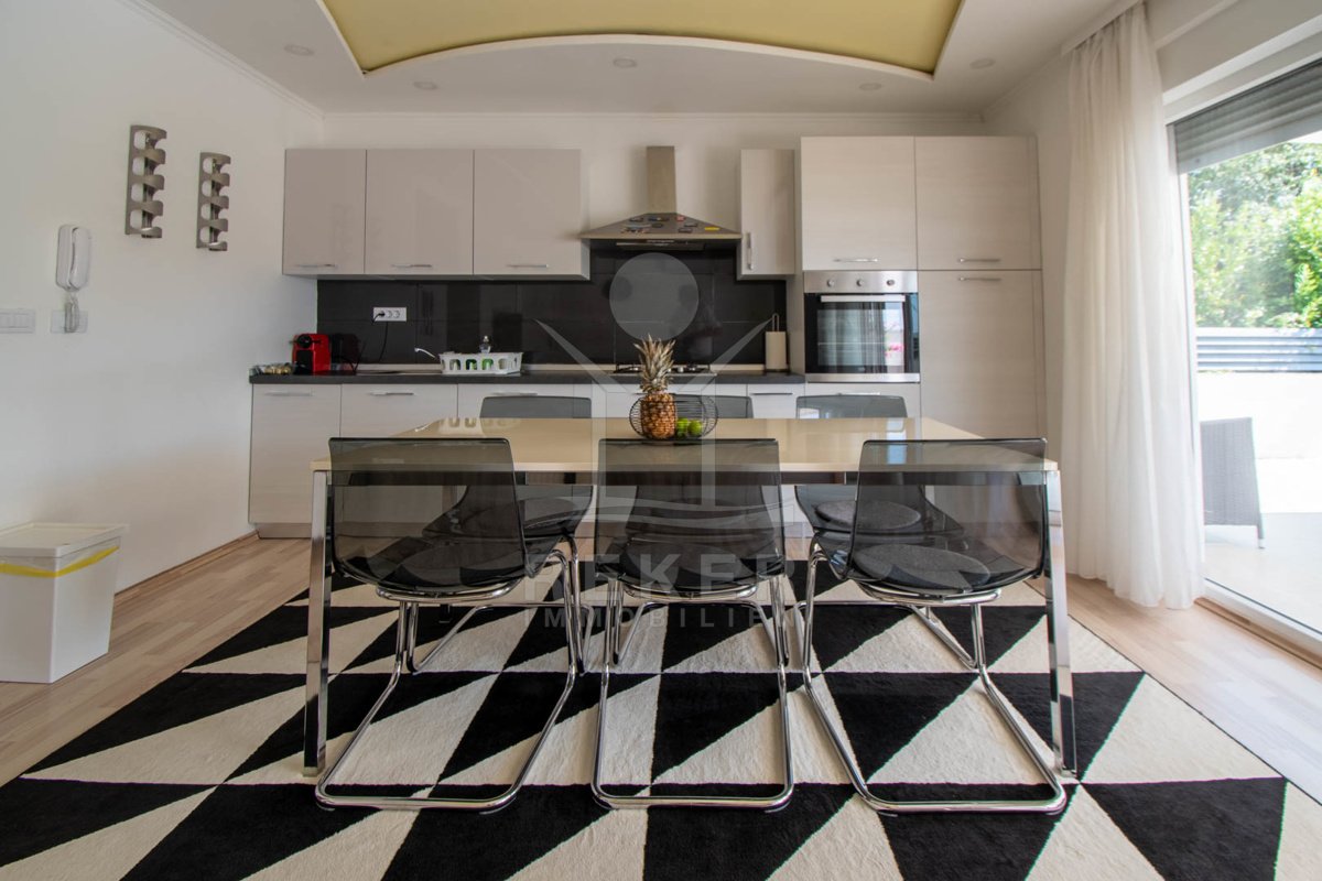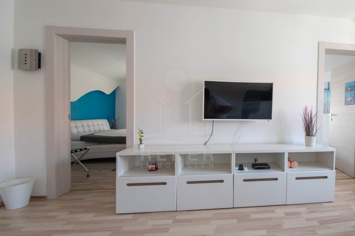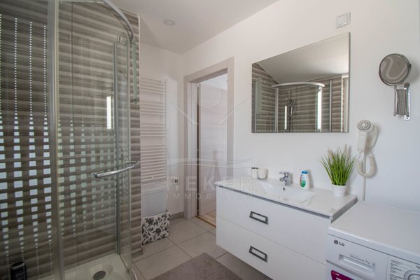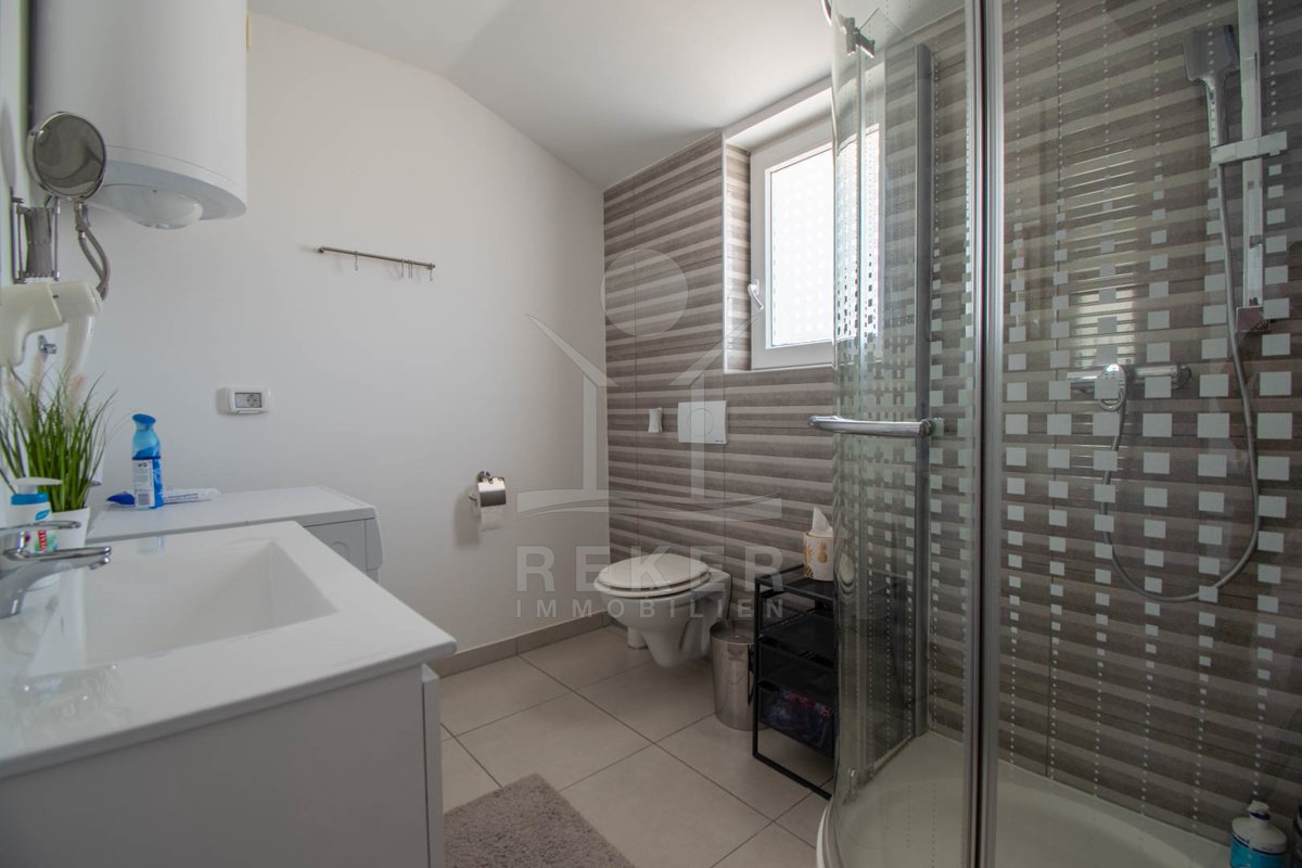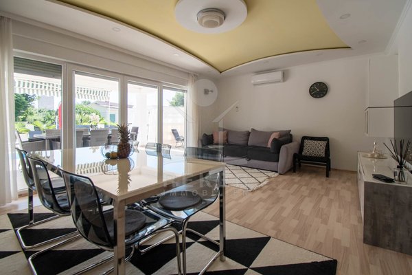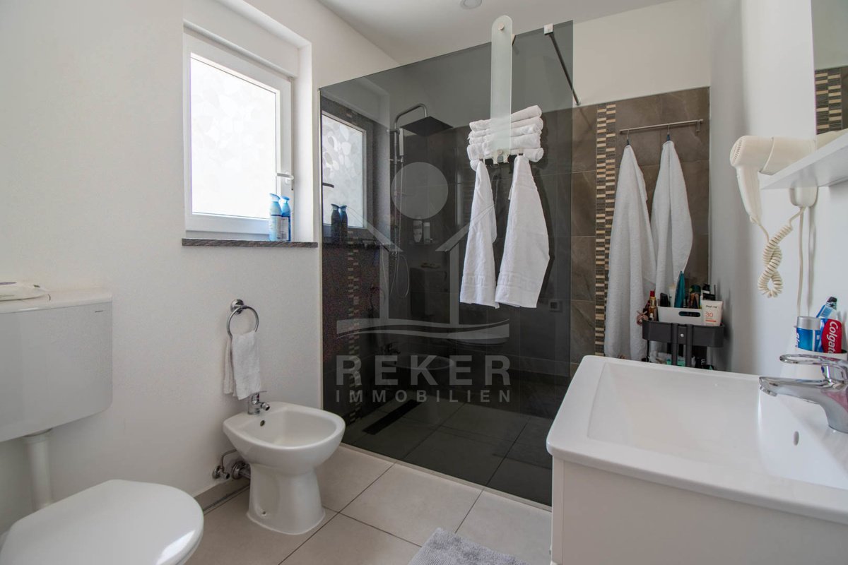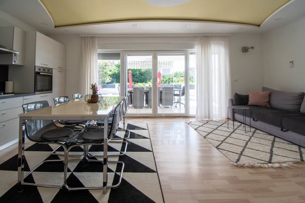 Entdecken Sie Ihr eigenes Stück Paradies in der idyllischen Umgebung von Krnica mit dieser einladenden Villa, die in zwei separate Wohnungen aufgeteilt ist. Die Nähe zum Meer und die atemberaubende Aussicht sorgen für eine unvergleichliche Atmosphäre. Aber das Highlight dieser Immobilie ist zweifellos der einladende Swimmingpool, der Ihnen die perfekte Abkühlung an heißen Sommertagen bietet. Genießen Sie entspannte Stunden im Jacuzzi, der in der charmanten Pergola untergebracht ist. Die großzügige Terrasse und die überdachte Terrasse laden zum Verweilen im Freien ein und bieten den perfekten Platz, um die warmen Abende zu genießen. Egal, ob Sie die Villa für sich selbst nutzen oder als Investitionsobjekt betrachten - diese Immobilie verspricht eine einzigartige Lebensqualität fernab des hektischen Alltags.