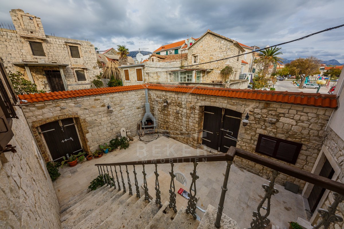 Entdecken Sie Ihren eigenen Ort des Glücks in diesem bezaubernden Stein-Reihenhaus direkt am Meer in Kaštela. Die perfekte Lage ermöglicht Ihnen einen idealen Lebensstil – ob für den Eigenbedarf oder als Investment für ein Tourismusgeschäft. Genießen Sie die Nähe zum Strand und den Panoramablick auf das glitzernde Meer. Das Haus ist liebevoll restauriert und kombiniert traditionelle Steinarchitektur mit modernem Komfort. Erleben Sie das südländische Flair und entspannen Sie auf der Terrasse oder dem Balkon, während Sie das Rauschen der Wellen genießen. Hier finden Sie Ihren ganz persönlichen Traum am Meer!