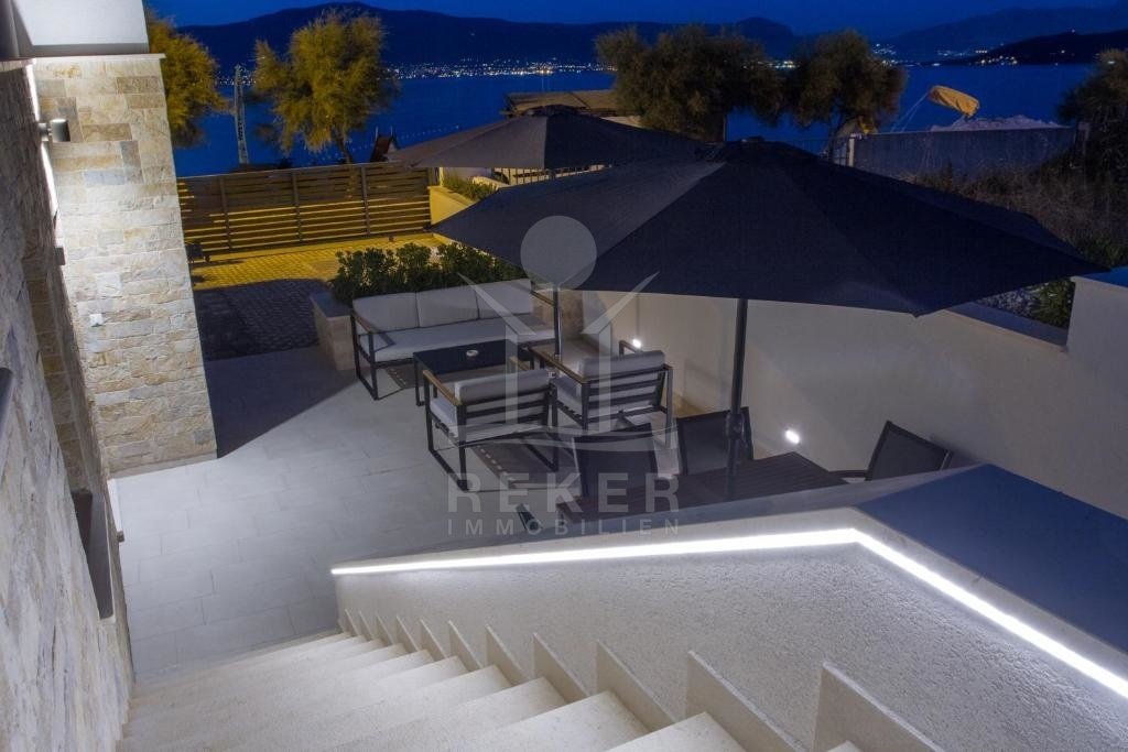 Entdecken Sie den absoluten Luxus in dieser atemberaubenden Villa direkt am Meer in Trogir! Diese brandneue Villa befindet sich in der ersten Reihe und bietet Ihnen einen unverbaubaren Blick auf das endlose Blau der Adria. Mit einem großzügigen Meerespool und einer erstklassigen Lage, nur wenige Schritte vom Strand entfernt, ist dies der perfekte Rückzugsort für anspruchsvolle Käufer. Die Villa wurde mit erstklassigen Materialien und modernster Technologie erbaut und bietet einen unvergleichlichen Wohnkomfort. Genießen Sie den Luxus eines Neubaus und den Komfort einer exklusiven Lage. Willkommen in Ihrem eigenen Paradies am Meer!