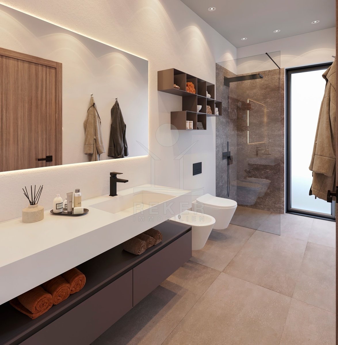 In Rovinj, nur wenige Schritte vom Meer entfernt, wartet eine moderne Wohnung in einer gepflegten Stadtvilla auf Sie. Der Strand ist 350 Meter entfernt, ein Geschäft rund 400 Meter. Auch Café, Schule und medizinische Einrichtungen sind schnell erreichbar. Zur Wohnung gehören ein Parkplatz im Hof und eine Garage im Erdgeschoss, ein seltener Vorteil in dieser begehrten Umgebung.
