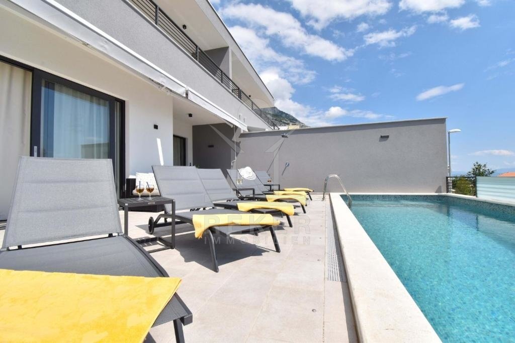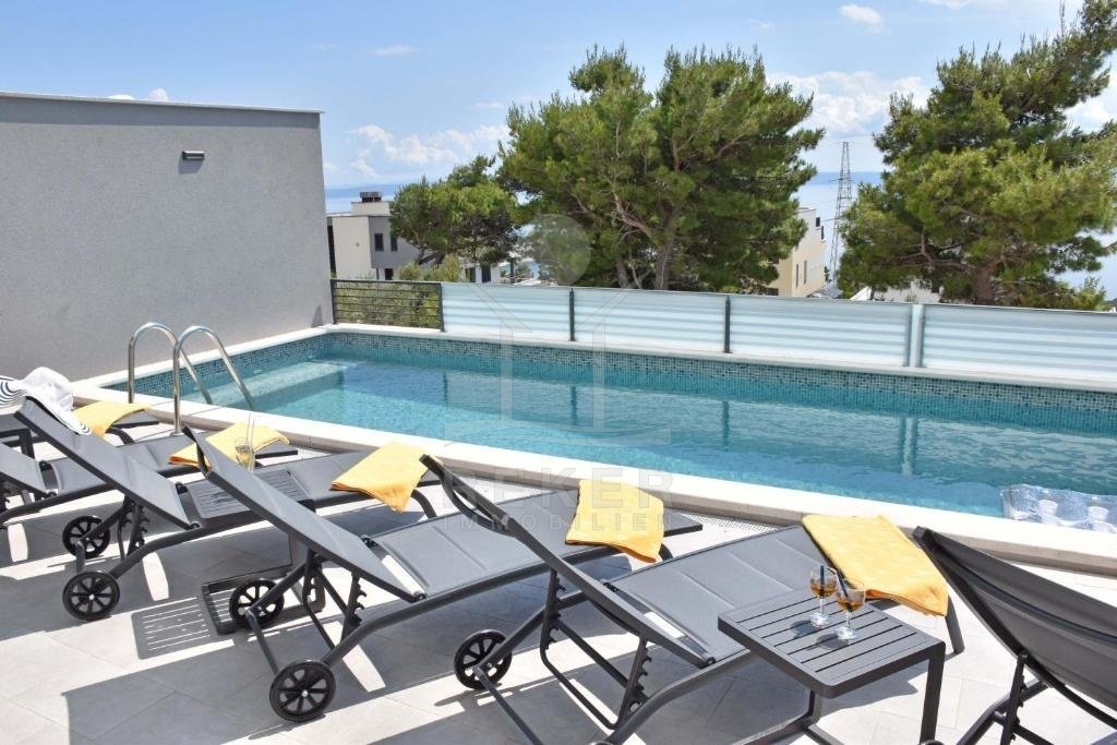 Nutzen Sie diese einzigartige Investitionsmöglichkeit und sichern Sie sich eine Haushälfte in der bezaubernden Stadt Makarska! Dieses wundervolle Anwesen besticht durch sein modernes Design und bietet einen atemberaubenden Blick auf das Meer. Das Neubauobjekt befindet sich nur wenige Schritte vom Meer entfernt und verfügt über eine 4-Sterne-Bewertung. Mit einem beheizten Swimmingpool können Sie das mediterrane Klima das ganze Jahr über genießen. Diese Immobilie ist eine hervorragende Investitionsmöglichkeit als Eigenkapital oder zur Einkommensgenerierung. Zögern Sie nicht lange und ergreifen Sie diese einzigartige Chance!
