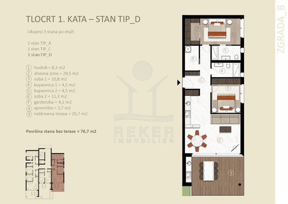 Das Neubauprojekt umfasst ein modernes Wohnhaus mit drei Etagen und insgesamt acht hochwertigen Apartments. Jede Einheit verfügt über einen privaten Abstellraum im Erdgeschoss sowie großzügige Terrassen, teils überdacht, teils offen, mit freiem Blick auf das Meer. Ein Aufzug verbindet alle Etagen. Private Parkplätze oder Garagen sorgen für Komfort und Sicherheit. Das Baukonzept setzt auf Energieeffizienz: Passivhäuser der Energieklasse A / A+, solide Bauweise und modernes Design schaffen ein angenehmes Zuhause.