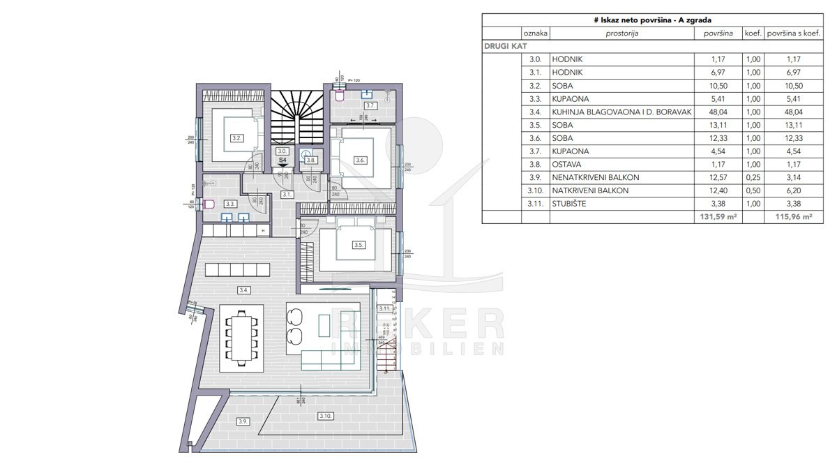 Erleben Sie das Inselleben auf Krk in seiner luxuriösesten Form in diesem exklusiven Penthouse. Tauchen Sie ein in den Luxus und gönnen Sie sich den ultimativen Lebensstil mit einem eigenen Swimmingpool und unvergleichlichem Meerblick. Die großzügige Dachterrasse lädt dazu ein, die Sonne zu genießen und den Blick über die atemberaubende Landschaft schweifen zu lassen. Diese seltene Immobilie bietet Ihnen nicht nur einen Ort zum Wohnen, sondern ein Erlebnis für alle Sinne.