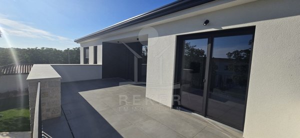 Nur 2 Kilometer von Poreč und rund 11 Kilometer vom Meer entfernt, wartet diese Neubauvilla auf Sie. 168 m² Wohnfläche, verteilt auf zwei Etagen. Dazu ein Grundstück mit 751 m². Zwei Stellplätze direkt am Haus runden das Angebot ab.