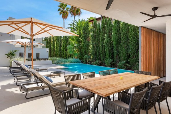Der Außenbereich eignet sich perfekt für Unterhaltungszwecke, da er über eine große Terrasse, einen Salzwasserpool mit Liegewiese, ein komplettes Badezimmer und eine Außenküche verfügt, in der Sie für Freunde und Familie kochen können.