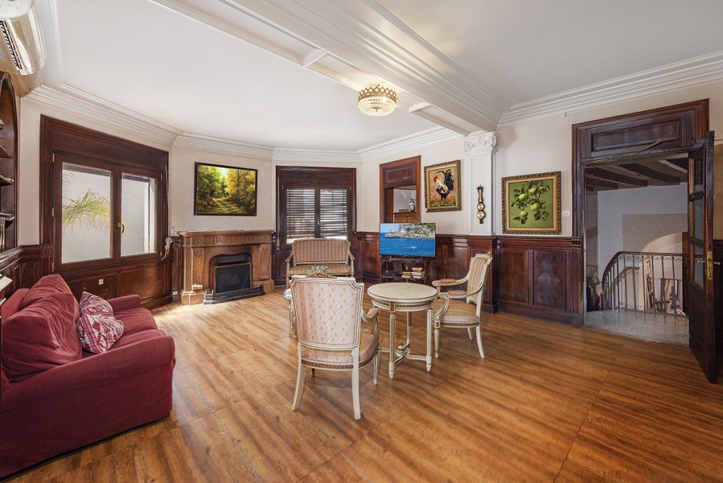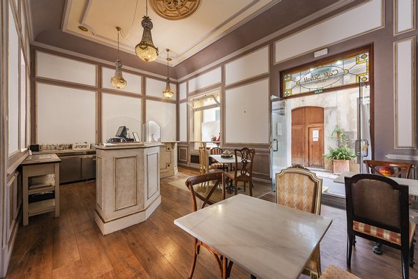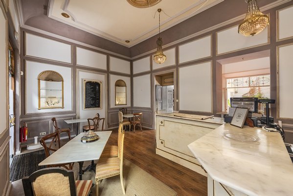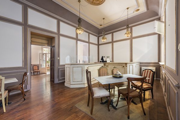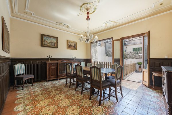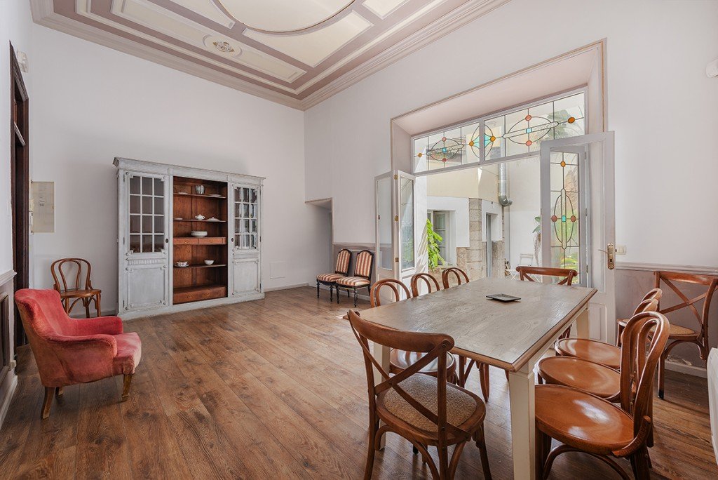 Derzeit ist das Erdgeschoss in zwei Bereiche unterteilt; auf der einen Seite befindet sich ein Sitzbereich mit hohen dekorativen Decken und einer schönen Terrasse im Innenhof, auf der man speisen kann. Die andere Seite wird durch eine elegante Eingangshalle, traditionelle Steinböden, eine geschwungene Treppe und einen Abstellraum erschlossen.