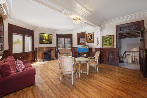Im ersten Stock befinden sich ein großes Wohnzimmer mit Kamin, ein Esszimmer, eine Einbauküche, fünf Schlafzimmer und drei Bäder. Im zweiten Stock befinden sich zwei weitere Schlafzimmer.
