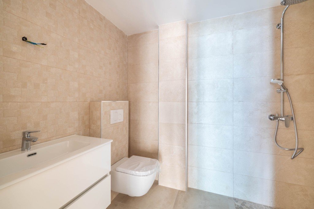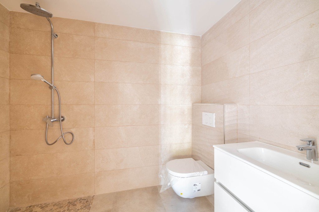 Diese besondere Wohnung befindet sich im ersten Stock mit vier Schlafzimmern, einer Wohnfläche von 142 m2 und einer überdachten Terrasse von 20 m2,