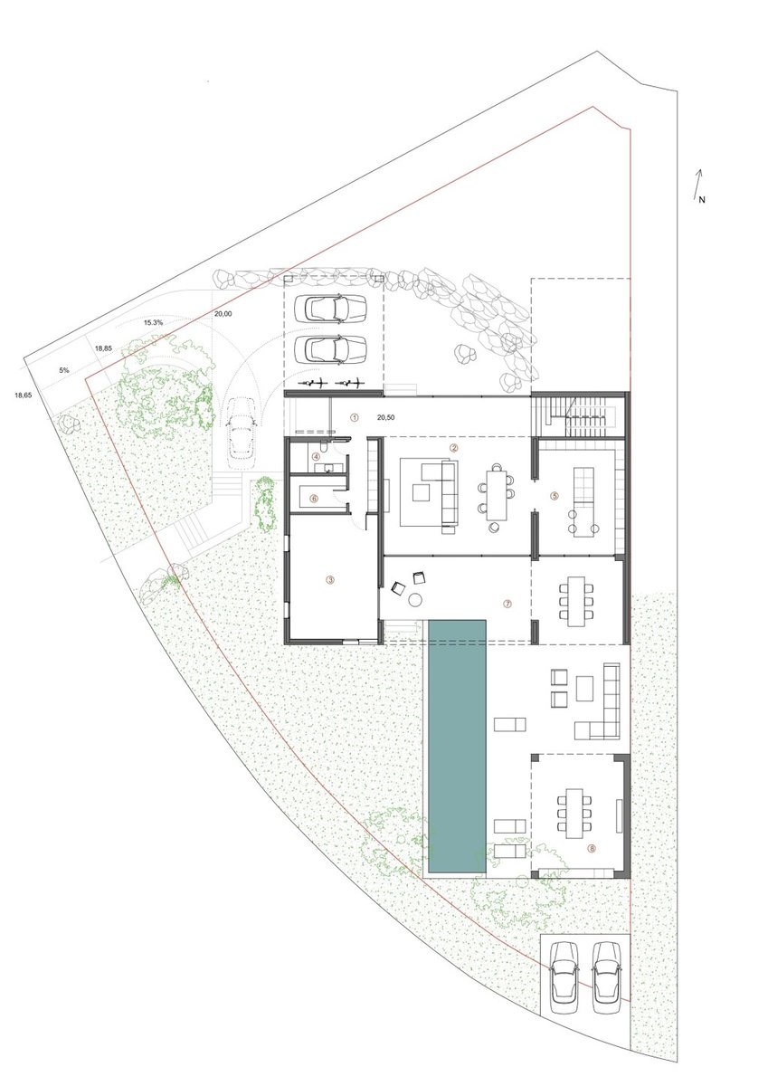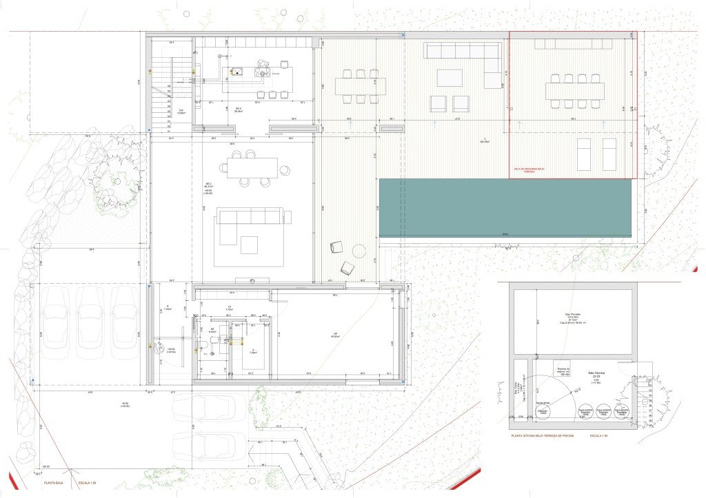 Das Grundstück wird mit einer Baugenehmigung und einem Projekt für eine 535m2 große moderne Villa mit vier Doppelschlafzimmern, einem Pool und viel Privatsphäre verkauft.