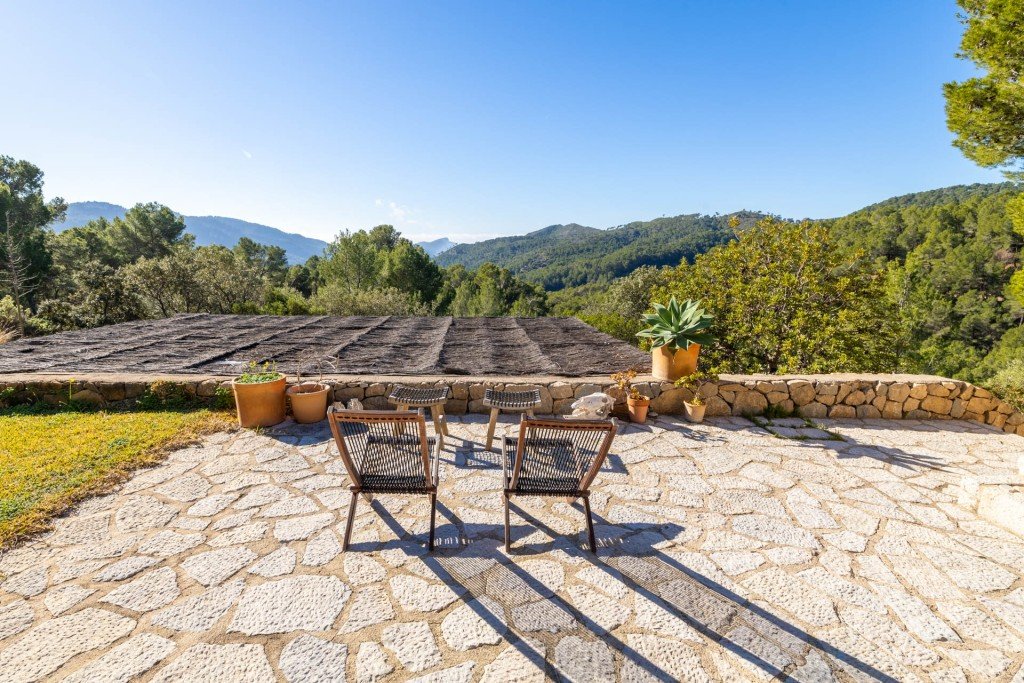 Diese rustikale mallorquinische Finca, die in Andratx zum Verkauf steht, ist eine Oase der Ruhe und Privatsphäre und hat eine privilegierte Hanglage mit Blick auf die Berge, das Tal und die Landschaft. Diese atemberaubende 439m2 große Villa wurde in
