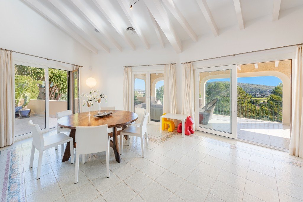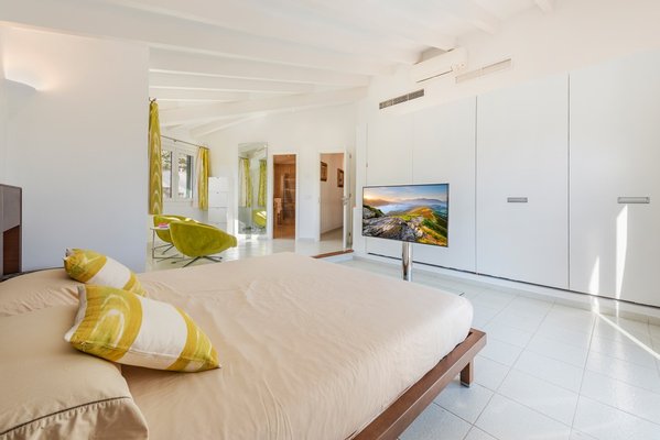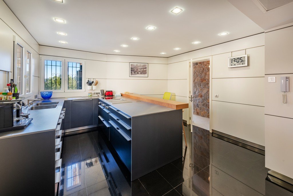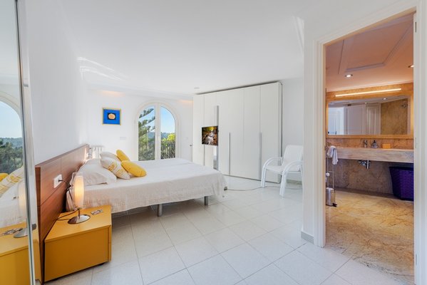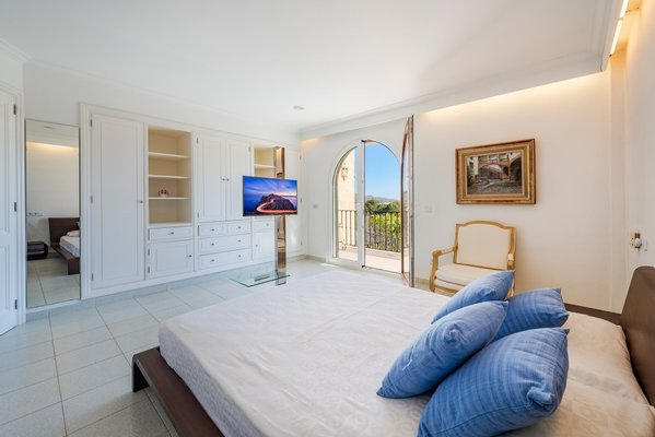 Beim Betreten begrüßt Sie eine fesselnde Eingangshalle mit Steindetails in einen geräumigen Ess- / Wohnbereich mit Kamin, ideal für gemütliche Winterabende. Die voll ausgestattete, kürzlich renovierte Küche befindet sich neben einer zweiten Terrasse, ideal für Mahlzeiten im Freien. Die Anordnung der Räume gewährleistet eine hohe Privatsphäre für alle, die die Ruhe dieses Wohnsitzes genießen möchten. Im Obergeschoss befindet sich die Hauptsuite, und auf einer unteren Ebene gibt es vier weitere Schlafzimmer, jedes mit eigenem Bad und direktem Zugang zu einer großen Terrasse mit atemberaubender Aussicht. Zusätzlich gibt es eine Gästewohnung mit eigenem Eingang.
