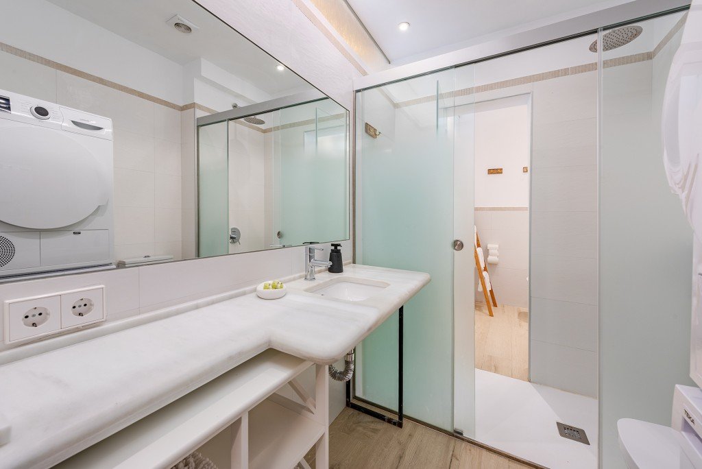 Jede Wohnung verfügt über ein geräumiges Schlafzimmer mit eigenem Bad und einen offenen Küchen-, Ess- und Wohnbereich. Zur weiteren Ausstattung gehören eine Klimaanlage, eine Waschmaschine und ein Wäschetrockner sowie ein Aufzug zum obersten Stockwerk.