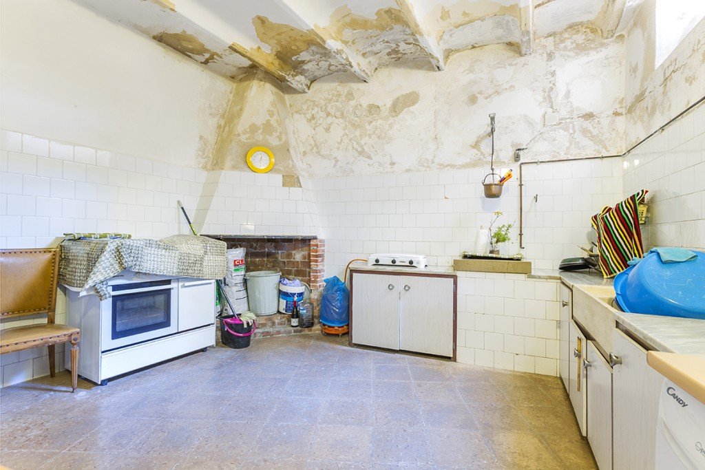 Das dritte Haus verfügt über einen unabhängigen Eingang und hat eine bebaute Fläche von ca. 50 m2, die sich auf zwei Stockwerke verteilt, einschließlich eines großen Dachgeschosses mit Blick auf den Innenhof.