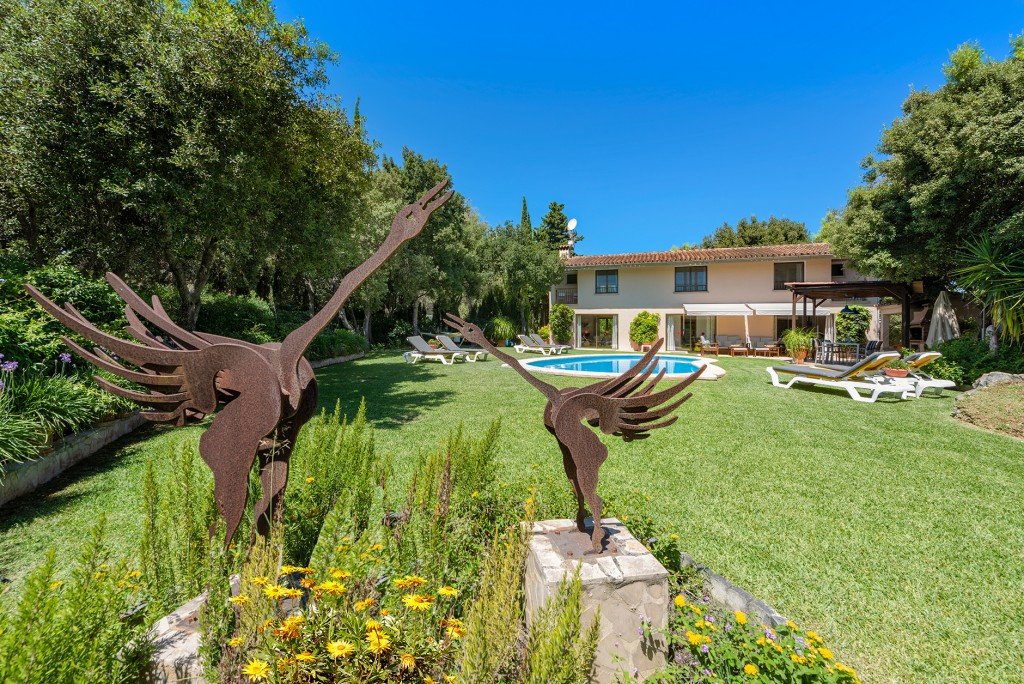 Die 444 Quadratmeter bebaute Fläche, die sich auf zwei Etagen verteilen, sind von malerischen Gärten auf einem Grundstück von 14.265 Quadratmetern umgeben.