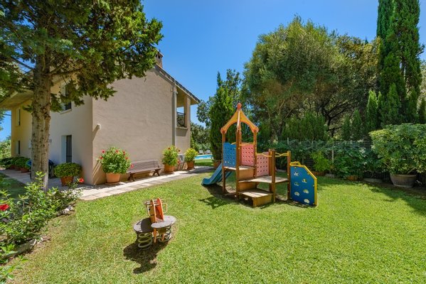 Im Außenbereich ist das Haus von einem pflegeleichten Garten umgeben, der durch sonnige und überdachte Terrassen, einen überdachten Grillplatz mit Esstisch und einen Swimmingpool ergänzt wird. Außerdem gibt es einen großzügigen umzäunten Raum für die Tierhaltung.