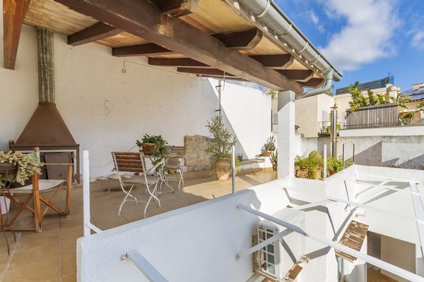 Im Dachgeschoss befinden sich drei weitere Zimmer und eine große Terrasse, auf der man das mediterrane Klima und den Blick auf den Puig de Maria genießen kann, während man Freunde unterhält oder im Freien speist.