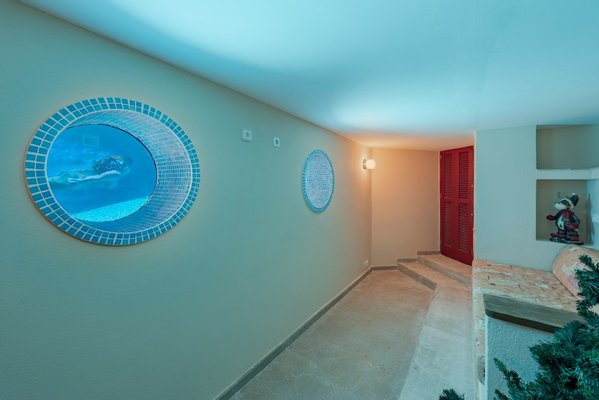 Große Glastüren öffnen sich zur Hauptterrasse, die einen großzügigen Swimmingpool bietet. Zusätzlich gibt es einen Keller, der als Stauraum genutzt werden kann und ein Bullauge bietet, das einen Blick auf den Pool ermöglicht.