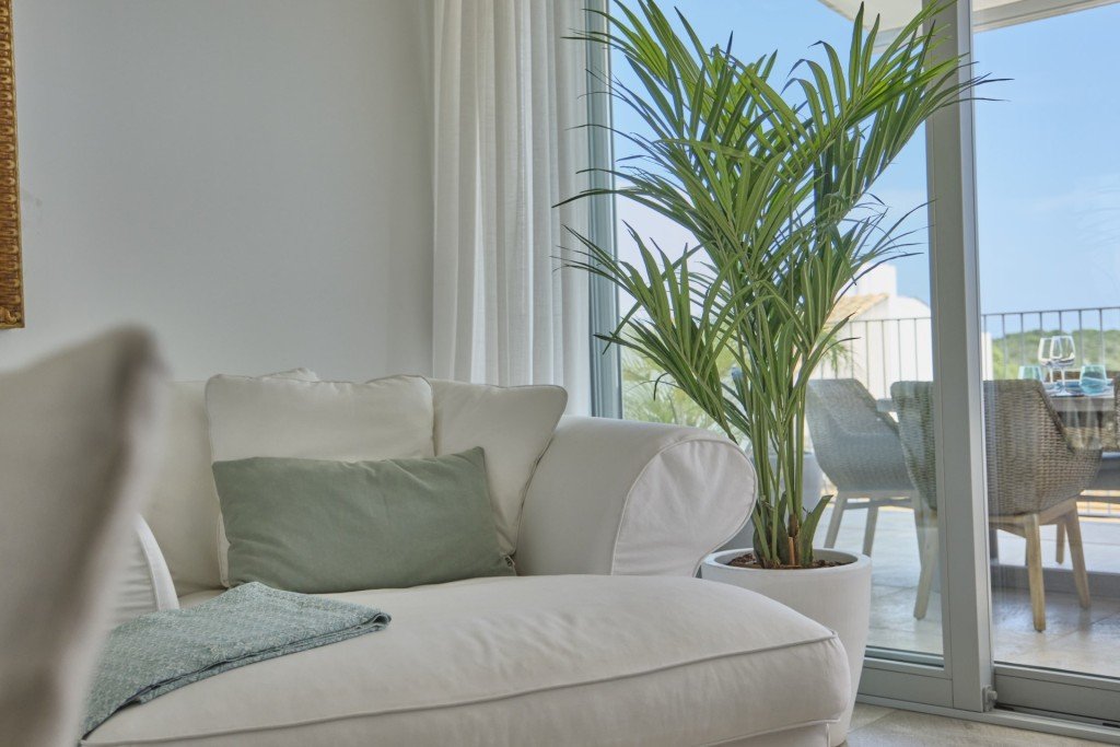 Die oberste Etage des Hauses bietet viel Flexibilität, da sie ein weiteres großes Schlafzimmer hat, das derzeit als zweites Wohnzimmer genutzt wird. Auf dieser Ebene befindet sich auch der Zugang zu einer großen Terrasse mit Außenküche und viel Platz für Sitzgelegenheiten und einen Grill.