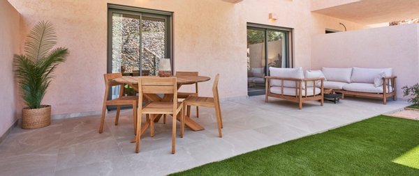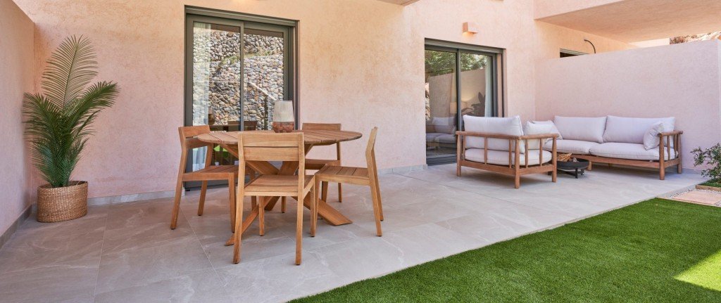 Ein Highlight ist, dass die Wohnungen über große, nach Südwesten ausgerichtete Terrassen und eigene Gärten mit Zugang zum Gemeinschaftspool und den angelegten Gartenbereichen verfügen.