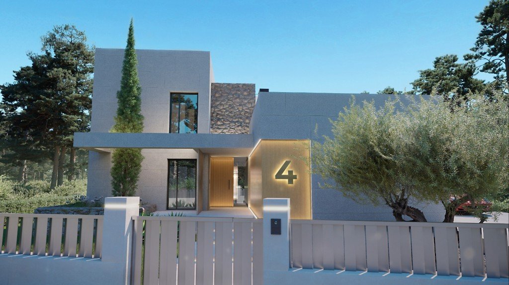 Die zweistöckige Villa wird eine bebaute Fläche von ca. 413m2 haben und fünf Schlafzimmer, fünf Bäder en suite, eine Bulthaup-Einbauküche mit integrierten Geräten und ein offenes Wohn-/Esszimmer, das viel Licht und Platz bietet, umfassen.