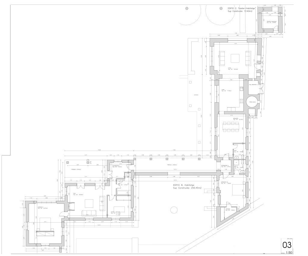 Das Anwesen ist in drei Teile aufgeteilt, der erste ist ein Wohnhaus mit drei unabhängigen Bungalows, die ca. 20 Jahre alt sind, wunderschön präsentiert und mit modernen Einrichtungen ausgestattet sind und durch Veranden, Terrassen und Gärten verbunden sind. Aufgrund seiner Größe und Aufteilung eignet es sich für Großfamilien.