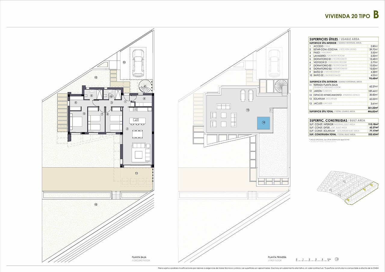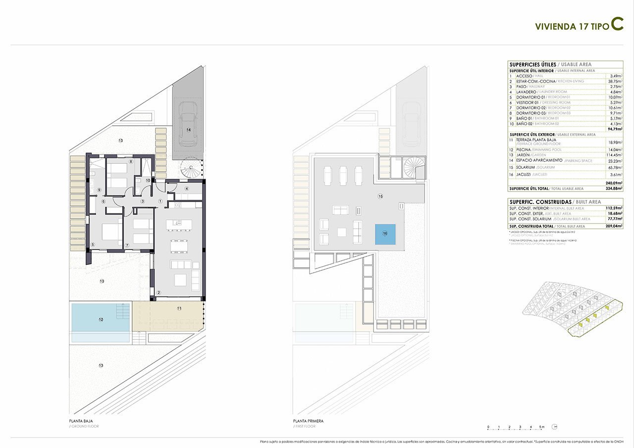 Diese wunderschönen Villen verfügen über eine konstruierte Fläche von ca. 209 m² - 253 m² (inklusive Terrassen) mit