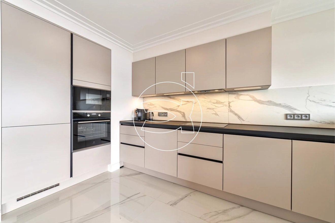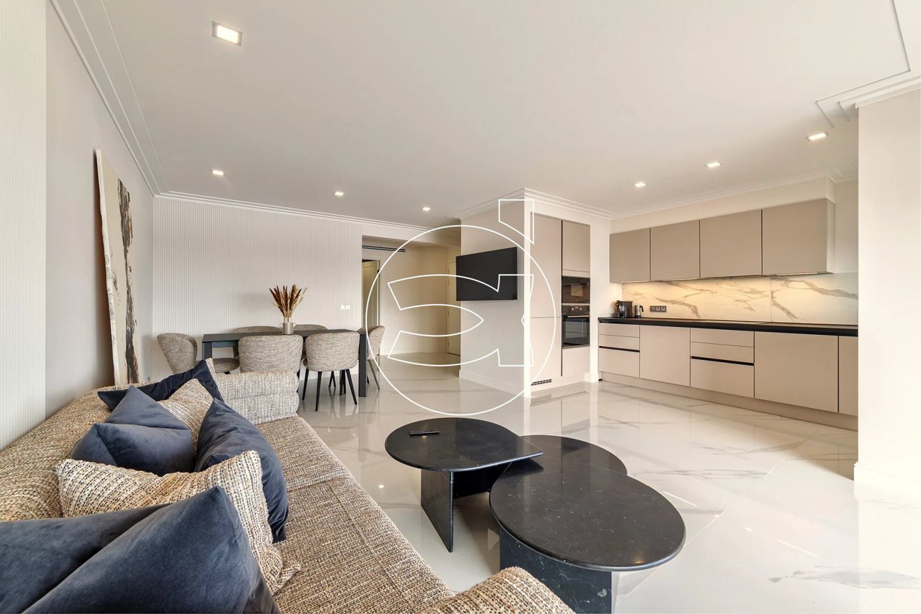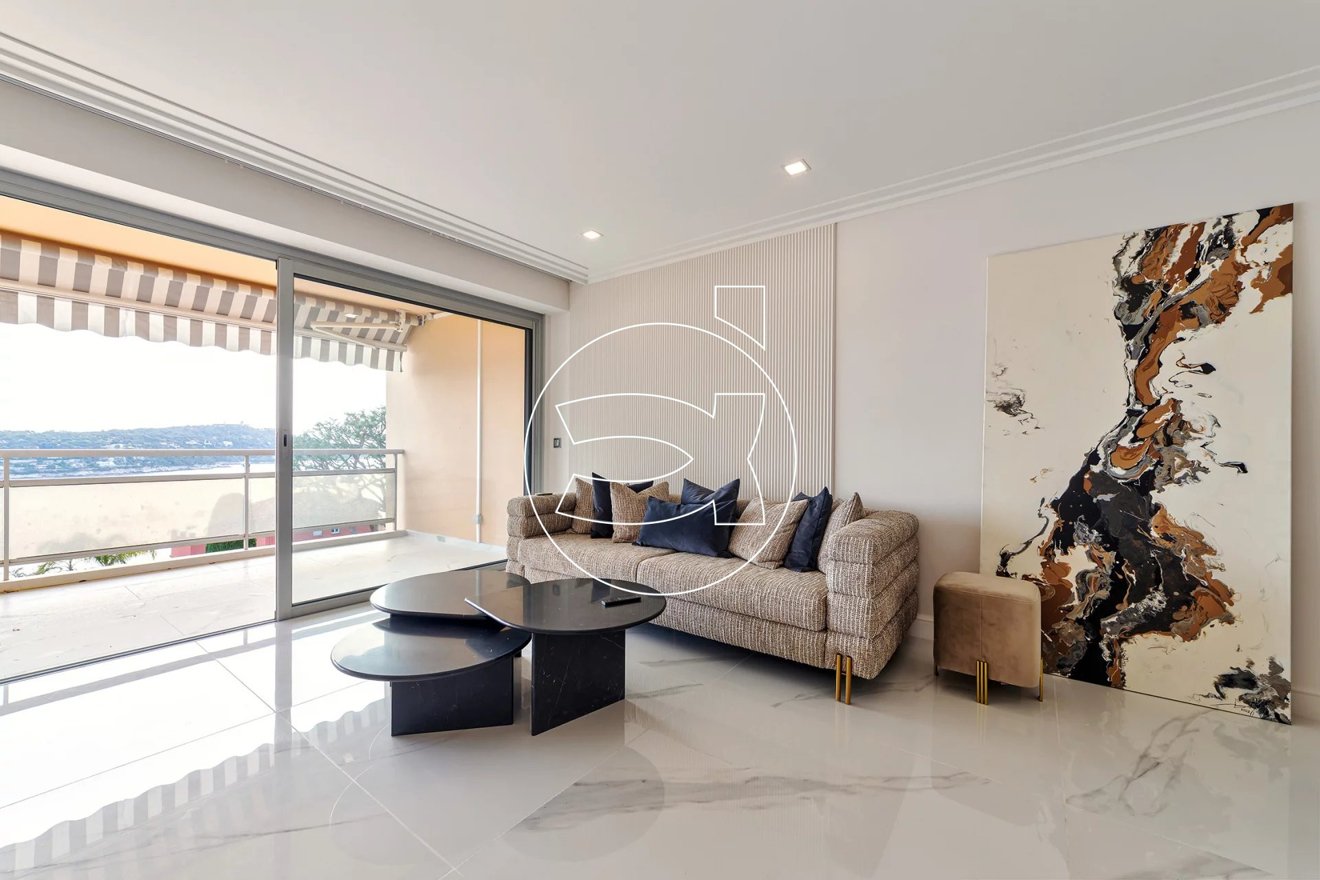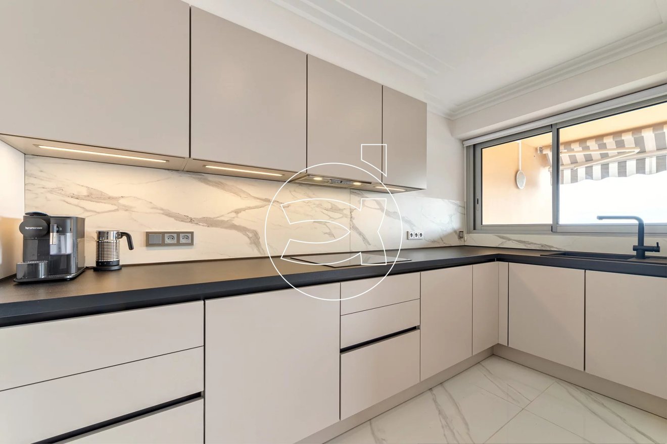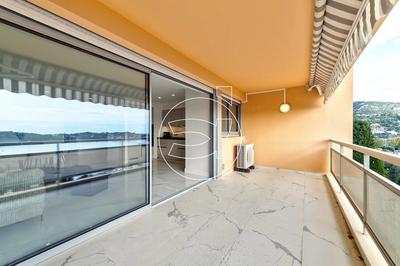 Die helle Wohnung besteht aus einem Eingangsbereich, einem geräumigen Wohnzimmer mit amerikanischer Einbauküche, die sich zu einer 14 m² großen Terrasse in Südlage öffnet, mit herrlichem Blick auf das Meer, die Rade von Villefranche und Saint-Jean-Cap-Ferrat.