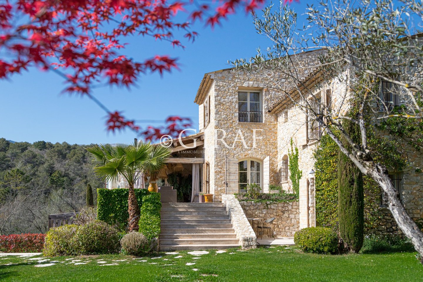 Exklusivität: In einem Garten von 15000 m2, mit sicherem Zugang und geschützt vor neugierigen Blicken, zeichnen Qualität und Authentizität dieses Steinbauobjekt aus, das Dienstleistungen bietet, die eines modernen Hauses würdig sind. Große Erkerfenster, die sich auf Terrassen öffnen, echte Orte des Lebens und Teilens, Steinplatten und Fußbodenheizung, zentralisierte Klimaanlage, Infinity-Pool, alle Hauptschlafzimmer, einschließlich des sehr großen Hauptschlafzimmers, das sich auf eine "tropezianische" Terrasse öffnet, die einen dominanten Blick auf die umliegenden Pinienwälder und das Meer bietet. Unabhängige Wohnung, sorgfältig angelegter Gemüsegarten, zahlreiche Parkplätze... Alles in einem eleganten und durchdachten Charme, der nicht protönig ist. Am Ende einer sicheren Sackgasse... 5 Minuten vom Dorf Saint Paul de Vence und 17 Minuten vom internationalen Flughafen Nizza entfernt... FALSCH