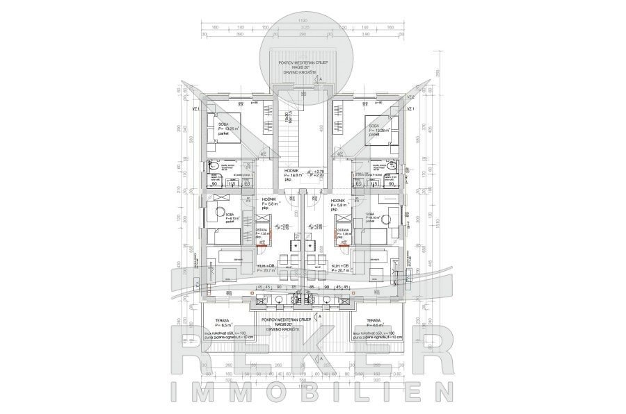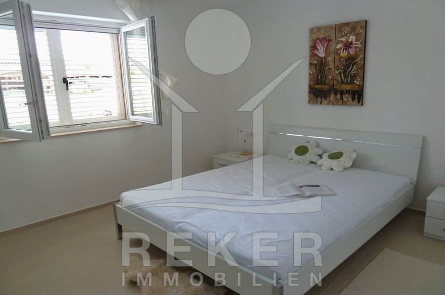 Im zweiten Stock befinden sich komplette und eigenständige Wohnungen, die jeweils über zwei Schlafzimmer, ein Wohnzimmer, eine Küche, ein Esszimmer, ein Bad, eine Diele, einen Abstellraum und eine Terrasse von 6,50 m² verfügen. Zur hochwertigen Ausstattung gehören Klimaanlage, Videoüberwachung, vier Parkplätze und ein schöner Außengrill.