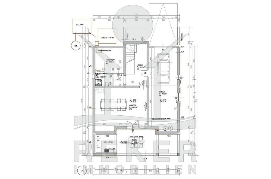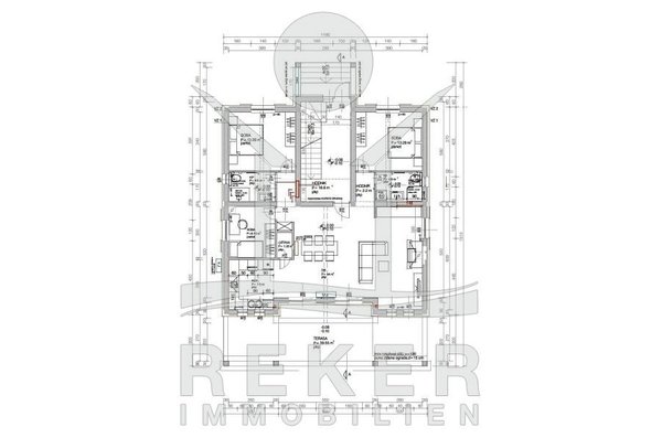 Das Haus verfügt im Erdgeschoss über eine Garage, einen Keller, einen Abstellraum, einen Flur, eine Outdoor-Küche und eine schöne Terrasse von 32,50 m².