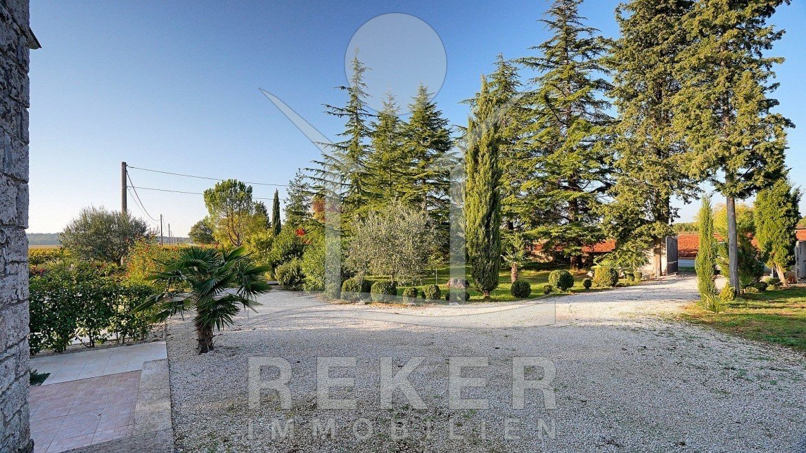 Umgeben von üppigen Wiesen und sanften Hügeln, genießen Sie hier sowohl Privatsphäre als auch den Komfort einer ausgezeichneten Anbindung an das Stadtzentrum, das nur 7 km entfernt ist. Der reich verzierte Eingang zum Anwesen, der von großen Zedern und Zypressen dominiert wird, verdeckt die Villa diskret von der Straße aus und erlaubt den Gästen und dem neuen Eigentümer eine maximale Privatsphäre. Eine hohe Steinmauer schützt perfekt vor ungebetenen Gästen. Auf dem Innenhof finden Sie ausreichend Platz zum Parken mehrerer Fahrzeuge.