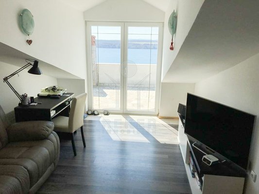 Gekrönt wird das Appartement jedoch mit der ca. 40 m² großen sonnigen Terrasse, die Ihnen einen unbezahlbaren Panoramablick auf die vorgelagerte kristallklare Adria der Kvarner Bucht sowie die schöne nahe gelegene Insel Krk bietet. Traumhafte Sonnenauf- und Untergänge gibt es als Topping gratis obendrauf!