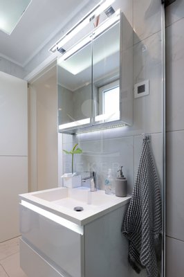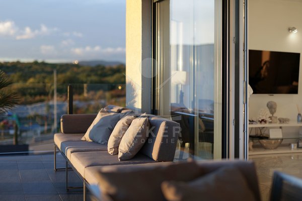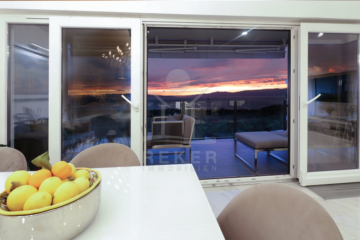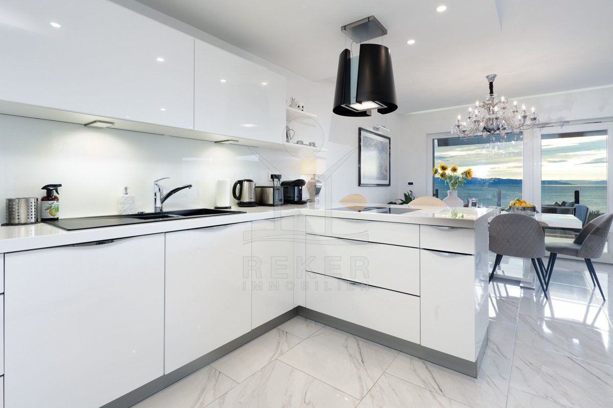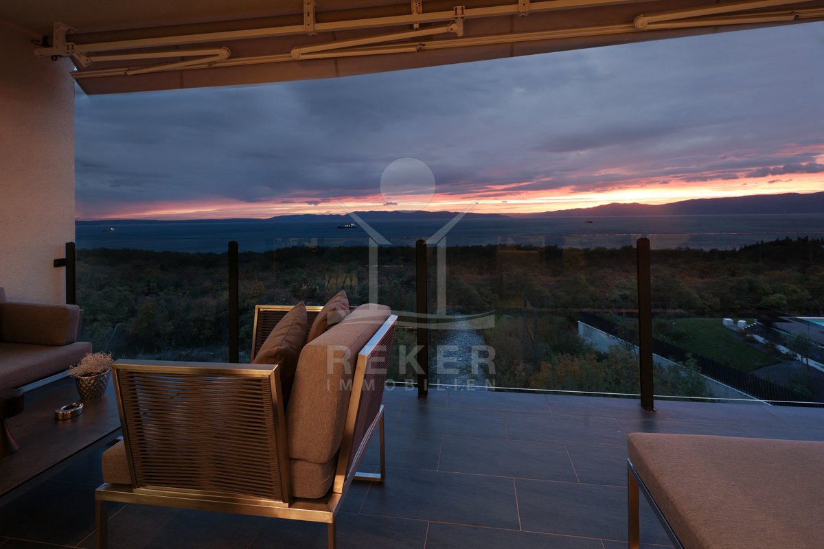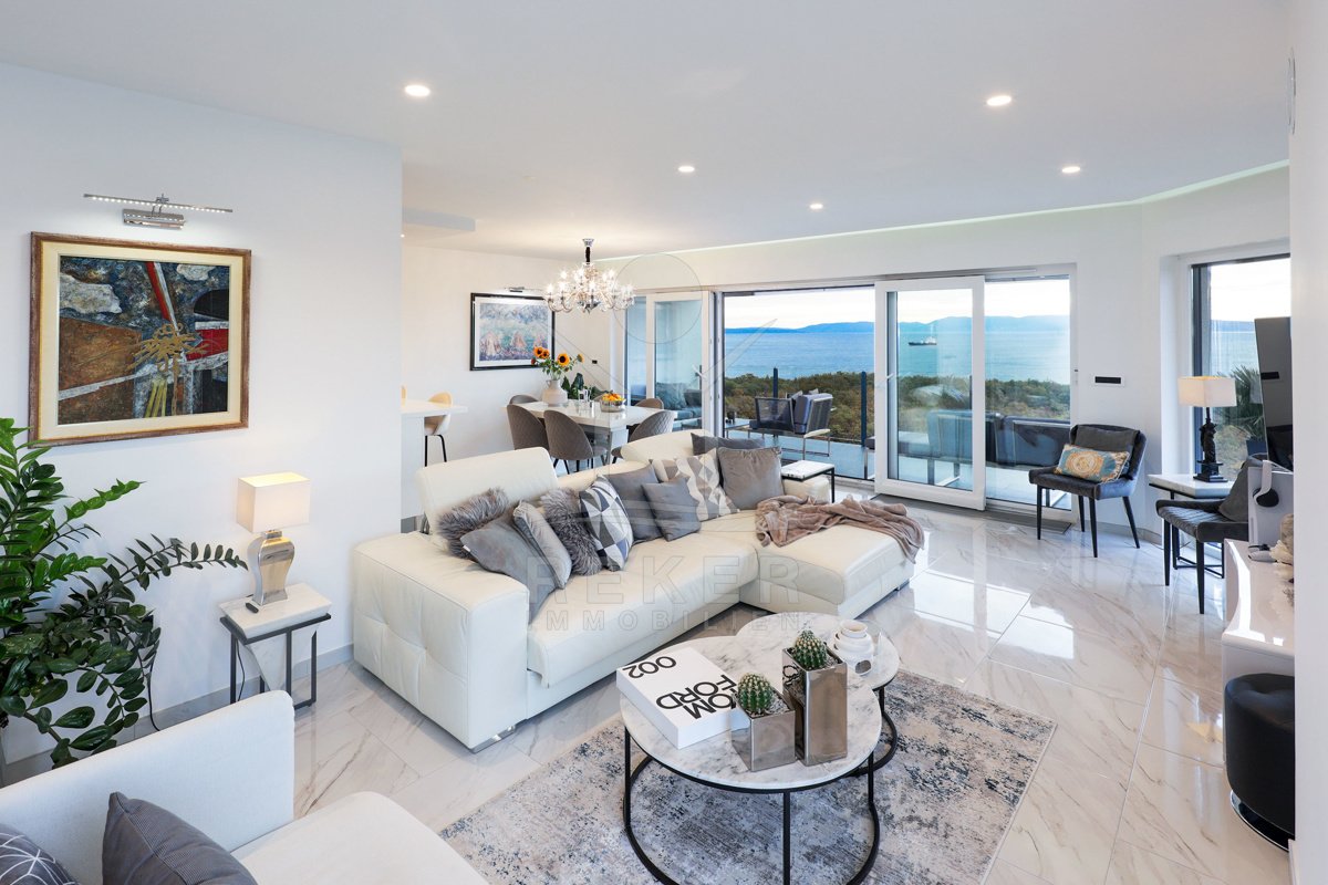 Ein exklusiver Rückzugsort, nur 450 m vom Meer entfernt. In der nahen Umgebung von Kostrena umgeben von idyllischer und erholsamer Landschaft, befindet sich diese moderne und luxuriöse Wohnung. Genießen Sie einen malerischen Ausblick auf das Meer. Die Kvarner Bucht wartet bereits!