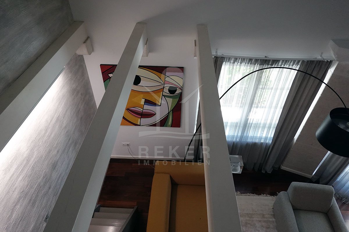 Der helle und offene Wohn-/ Essbereich mit Einbauküche und Blick ins Grüne erwartet Sie im Erdgeschoss. In der zweiten Etage befinden sich die drei Schlafräume.