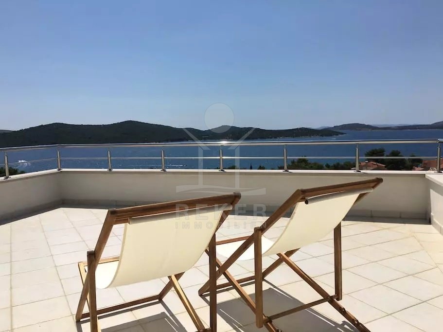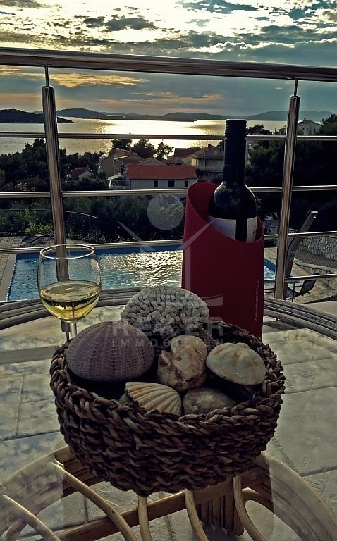 Freuen Sie sich auf eine hochwertige Einrichtung und fantastische Aussichten von der Terrasse, vom herrlichen Pool und vom Balkon aus auf das offene Meer. Die Immobilie befindet sich 700 m vom Ortszentrum Sibeniks und 200 m vom Meer entfernt.