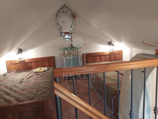 Auf dem Grundstück befindet sich zusätzlich ein Haus, dessen 57 m² Wohnfläche sich auf drei Etagen verteilt.