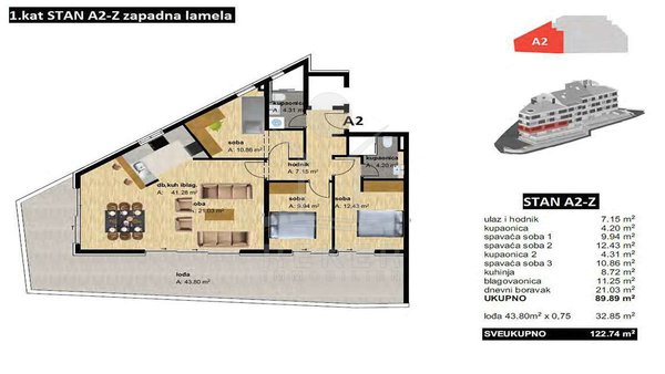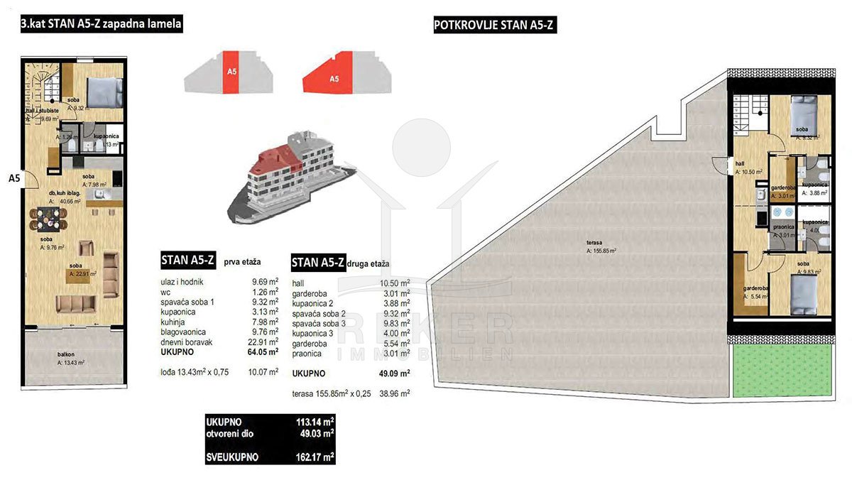 Im dritten Stockwerk und auf dem Dachboden befinden sich die Maisonette-Wohnungen mit drei Schlafzimmern.