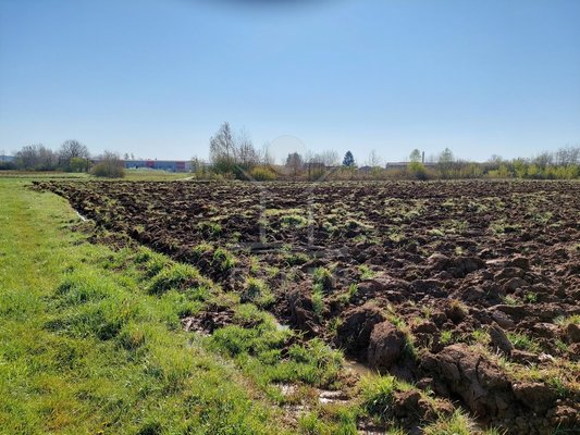 Dieses Baugrundstück befindet sich in der Bauzone, zwischen einer Straße und der Eisenbahn.