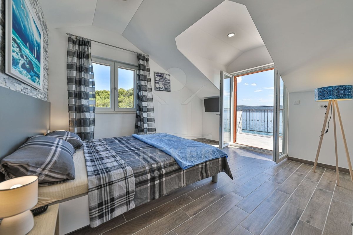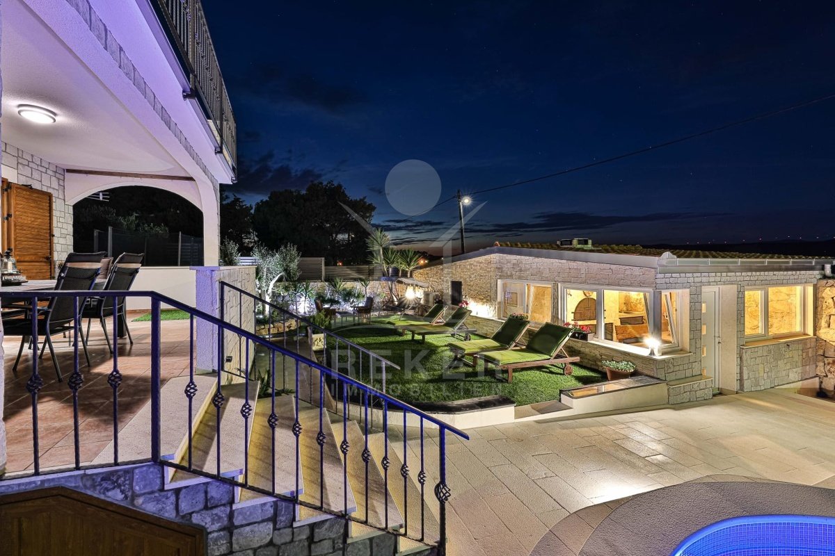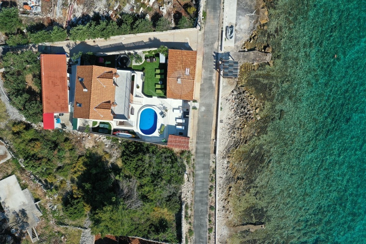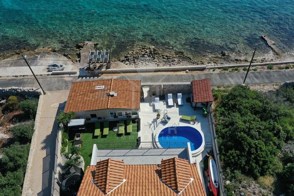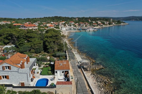 Dieses grandiose Angebot beinhaltet drei bewundernswerte Immobilien mit einer Gesamtwohnfläche von ca. 252 m² und befindet sich in absolut unvergleichlicher Lage, nur 10 m vom Meer entfernt, auf einem ca. 483 m² umfassenden Grundstück. Es liegt auf einer ruhigen Insel in der Nähe von Trogir.
