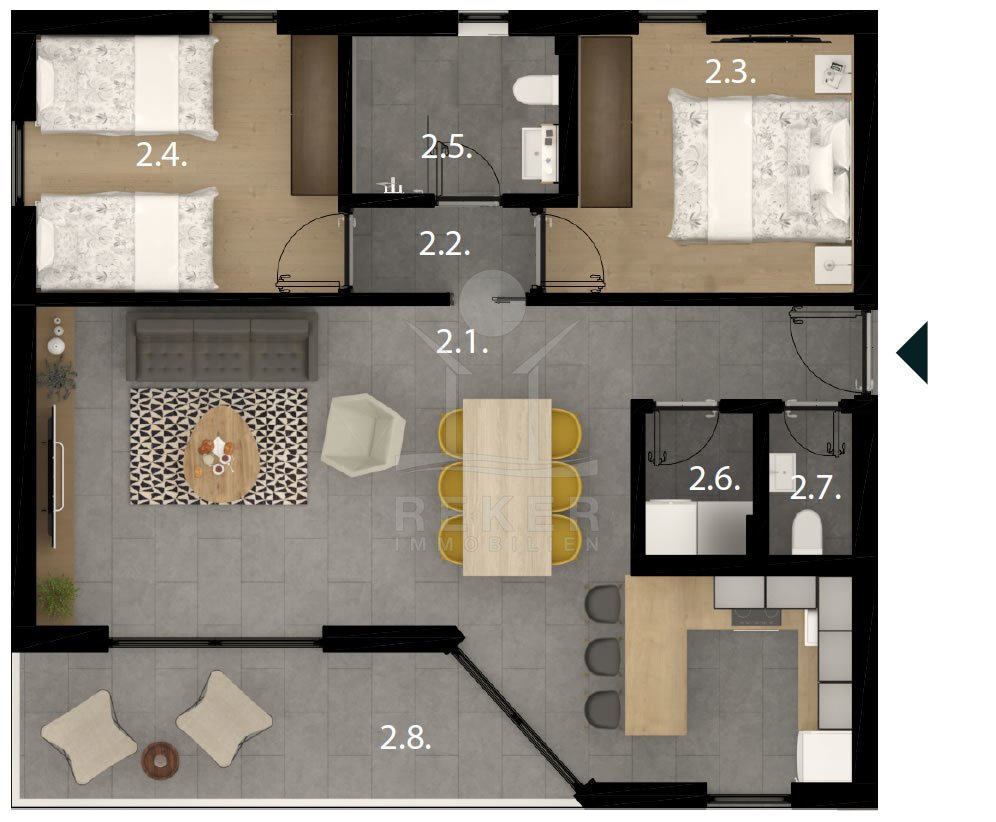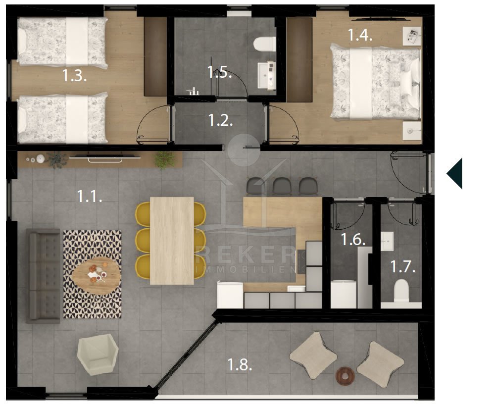 Diese Luxus-Wohnungen befinden sich nicht nur in beeindruckender Lage, lediglich etwa 500 m vom Meer und ca. 900 m vom Ortszentrum entfernt, sondern begeistern auch mit einer perfekt durchdachten und lichtdurchströmten Wohnfläche.