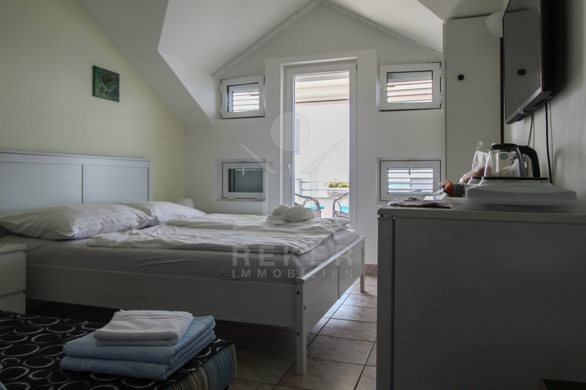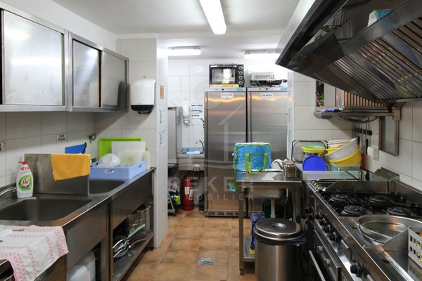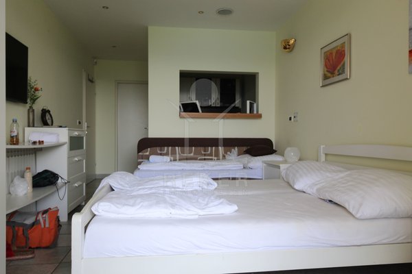 Ca. 302 m² Wohnfläche verteilen sich hier auf fünf Apartements in den oberen Stockwerken und eine großzügige Küche mit Bar im Erdgeschoss, die sich für die Gastronomie ganz hervorragend eignet.