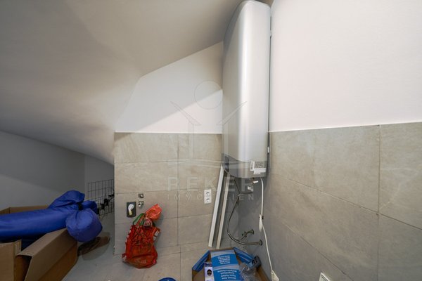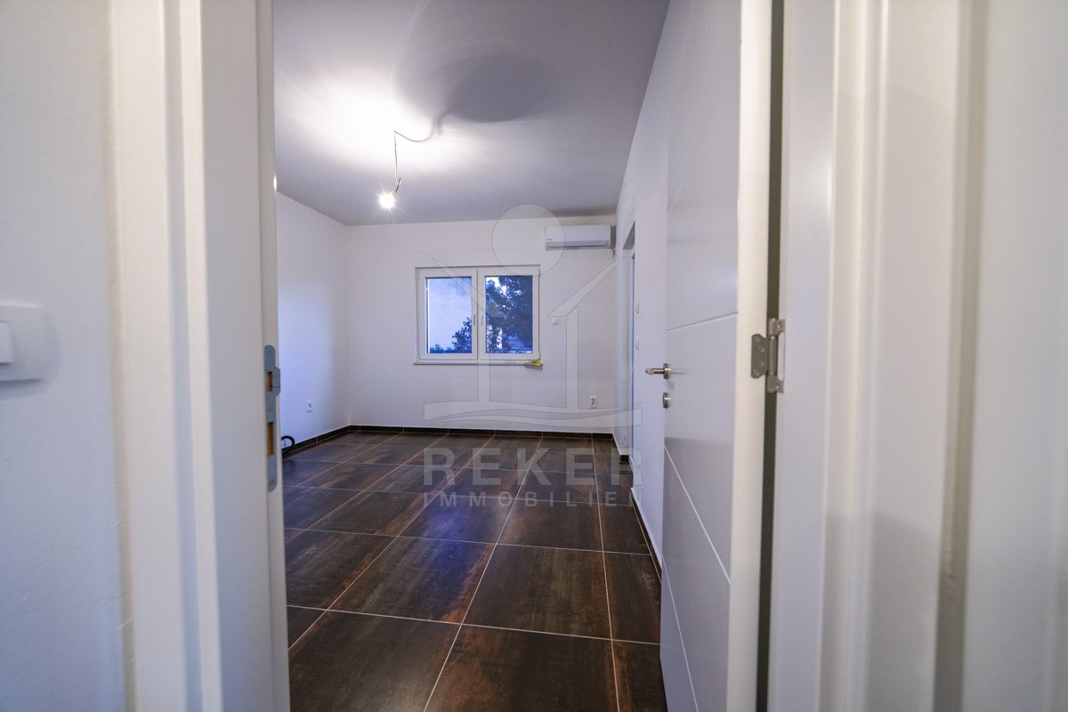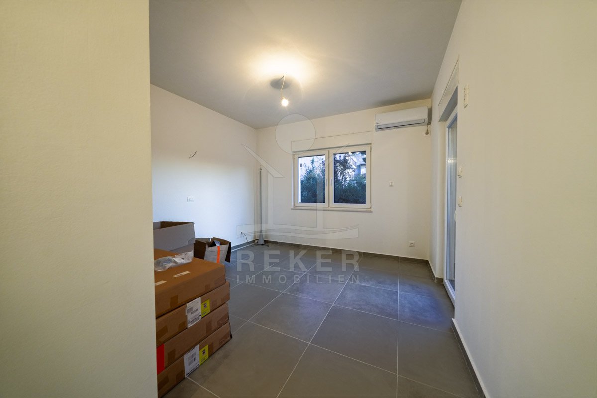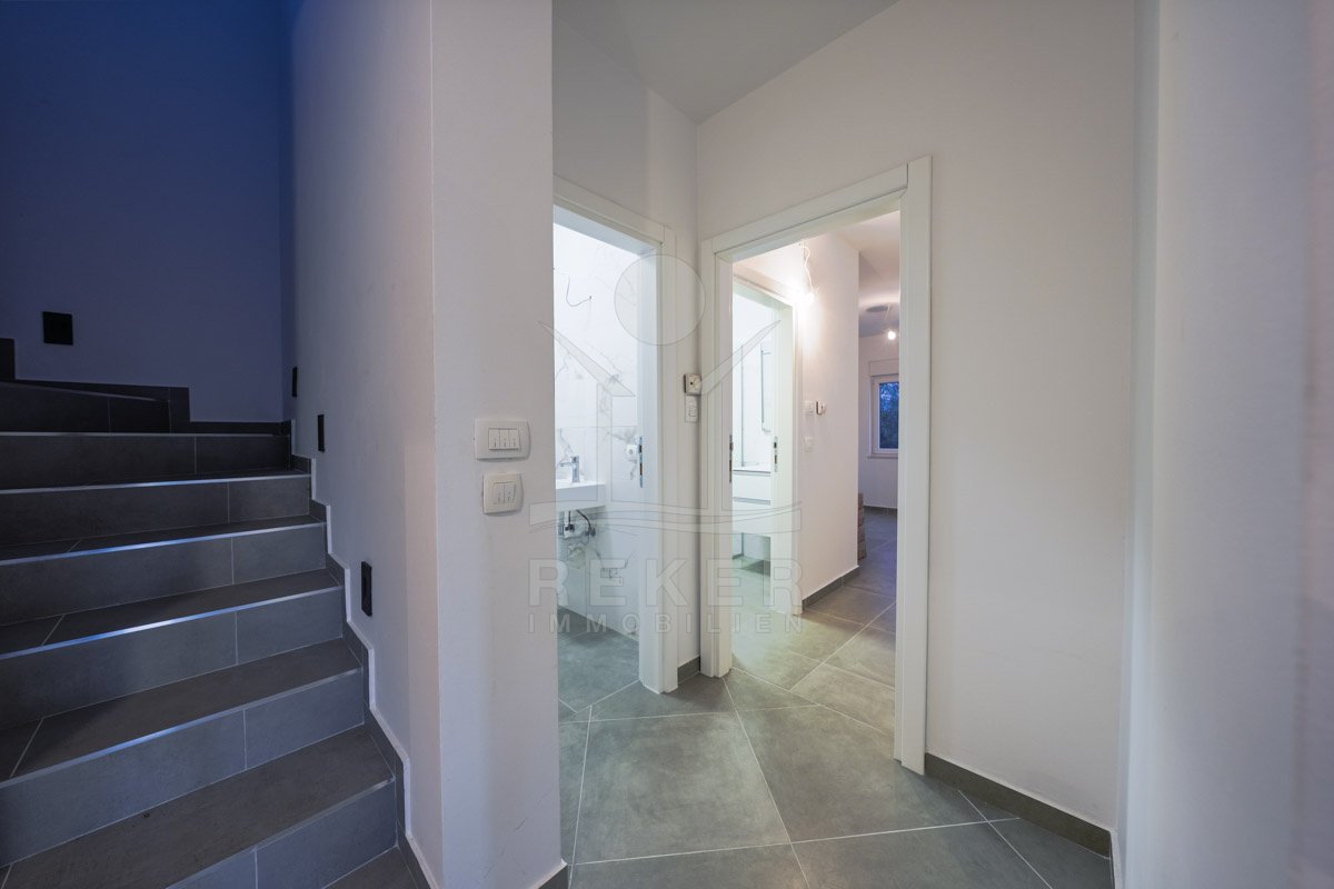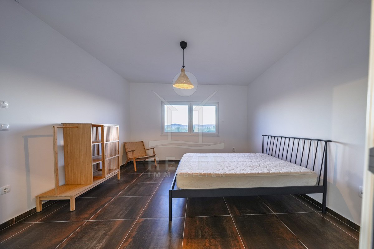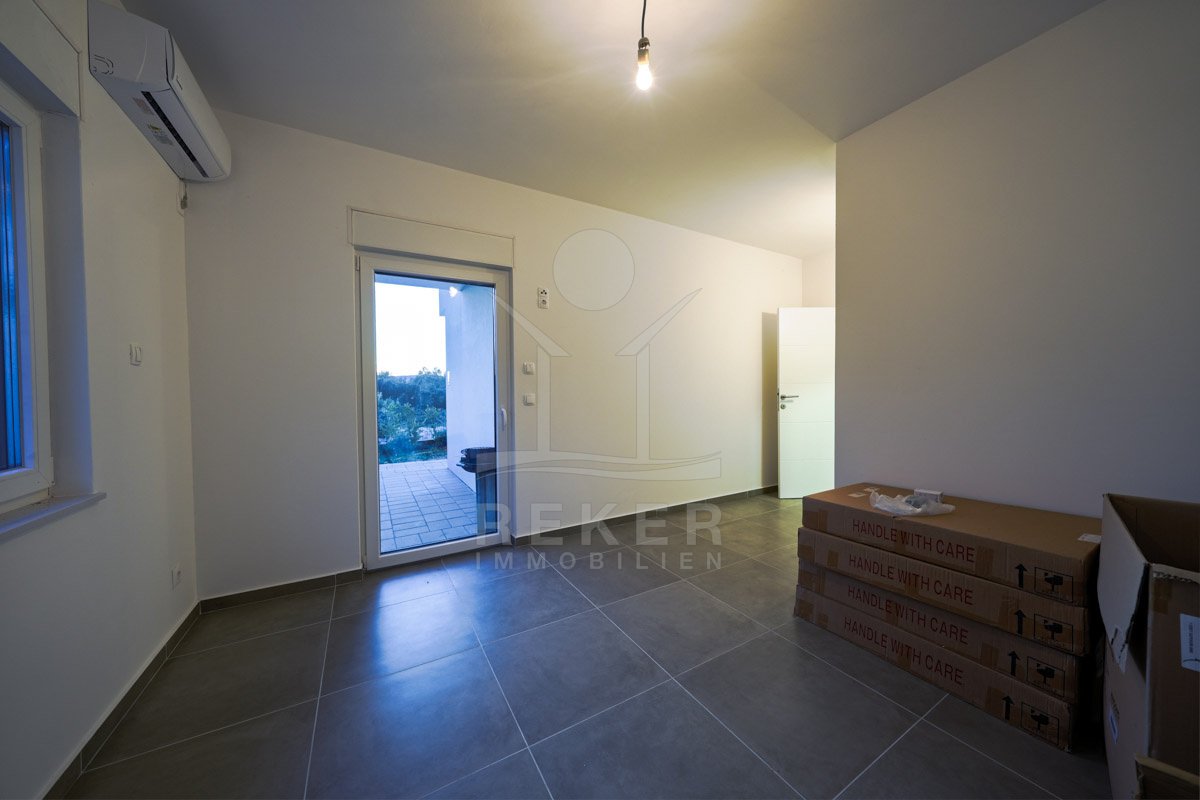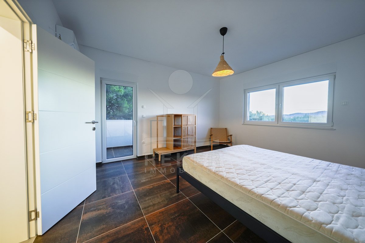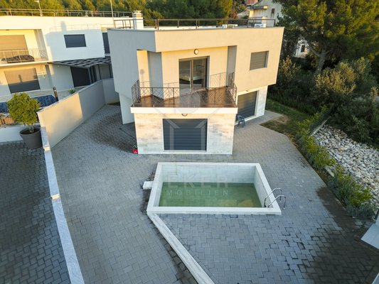 Diese moderne Villa in ruhiger, grüner Umgebung nahe Šibenik bietet alles, was man sich an der dalmatinischen Küste wünscht. Nur 500 Meter trennen Sie vom Meer. Das Grundstück mit rund 459 m² ist von einer Steinmauer umgeben und durch dichte