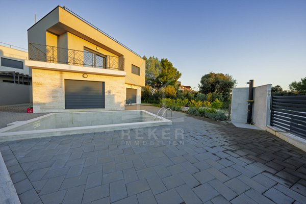 Privater Pool, moderne Architektur, grüne Umgebung – hier stimmt jedes Detail. Die Neubau-Villa bei Šibenik verbindet Exklusivität, Komfort und Lagevorteil zu einem harmonischen Gesamtbild. Sehen Sie selbst, wie Wohnen zur Erholung wird.