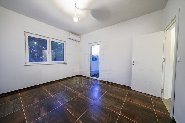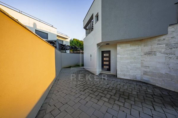 Diese moderne Villa in ruhiger, grüner Umgebung nahe Šibenik bietet alles, was man sich an der dalmatinischen Küste wünscht. Nur 500 Meter trennen Sie vom Meer. Das Grundstück mit rund 459 m² ist von einer Steinmauer umgeben und durch dichte Bepflanzung geschützt. Drei Parkplätze befinden sich vor dem Haus, im geschlossenen Hof stehen weitere Stellflächen bereit.